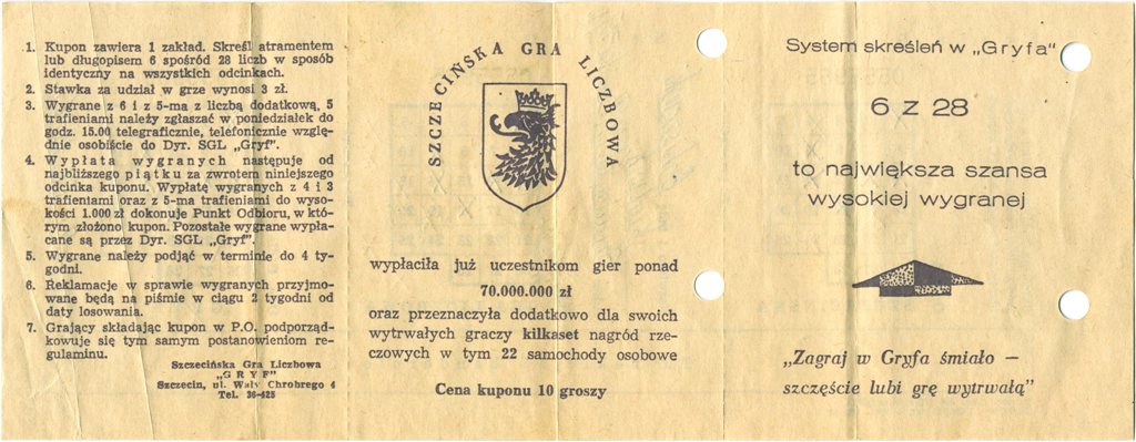 Tym razem kupon gry liczbowej ze Szczecina, czyli Gryf.