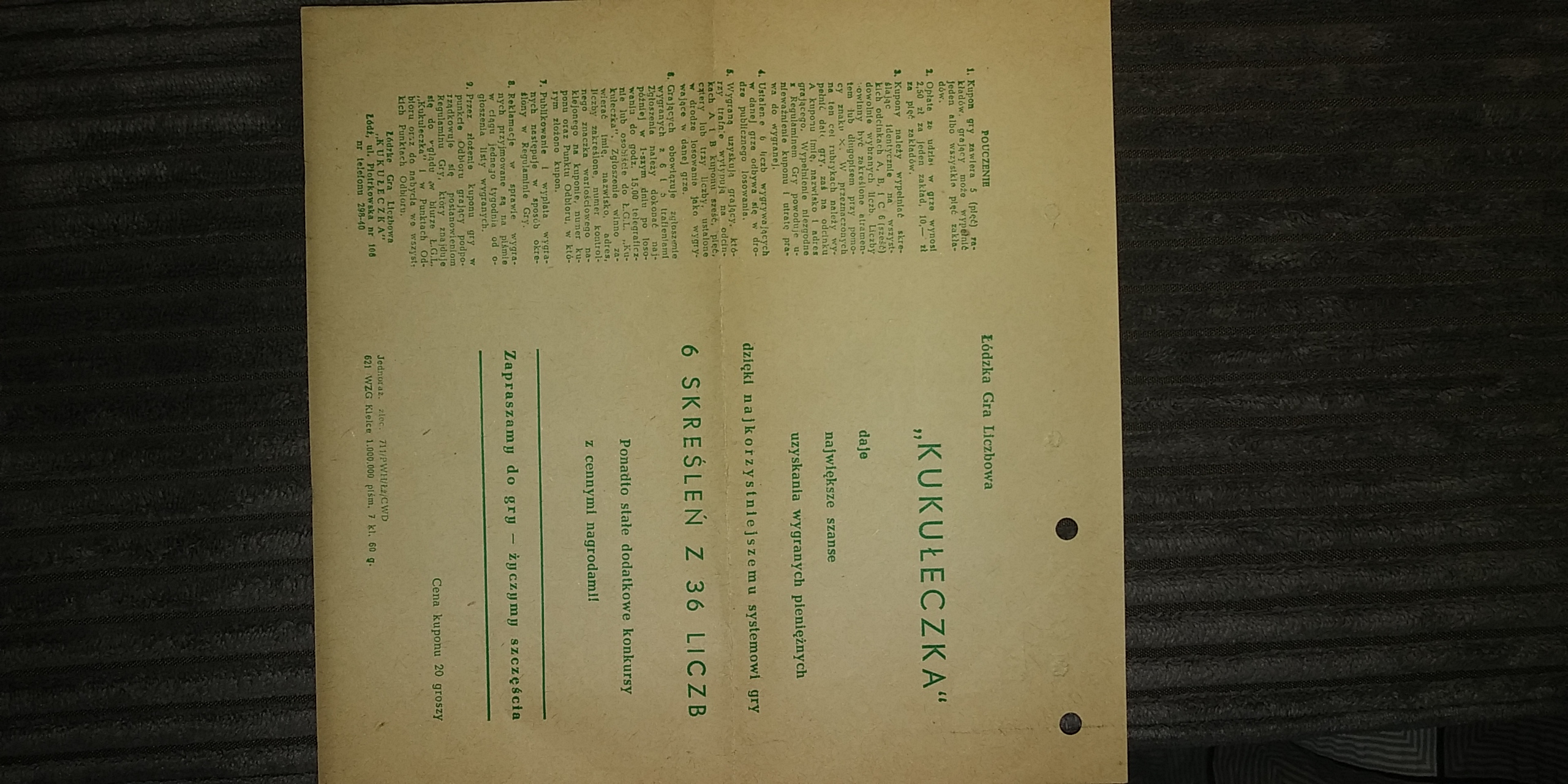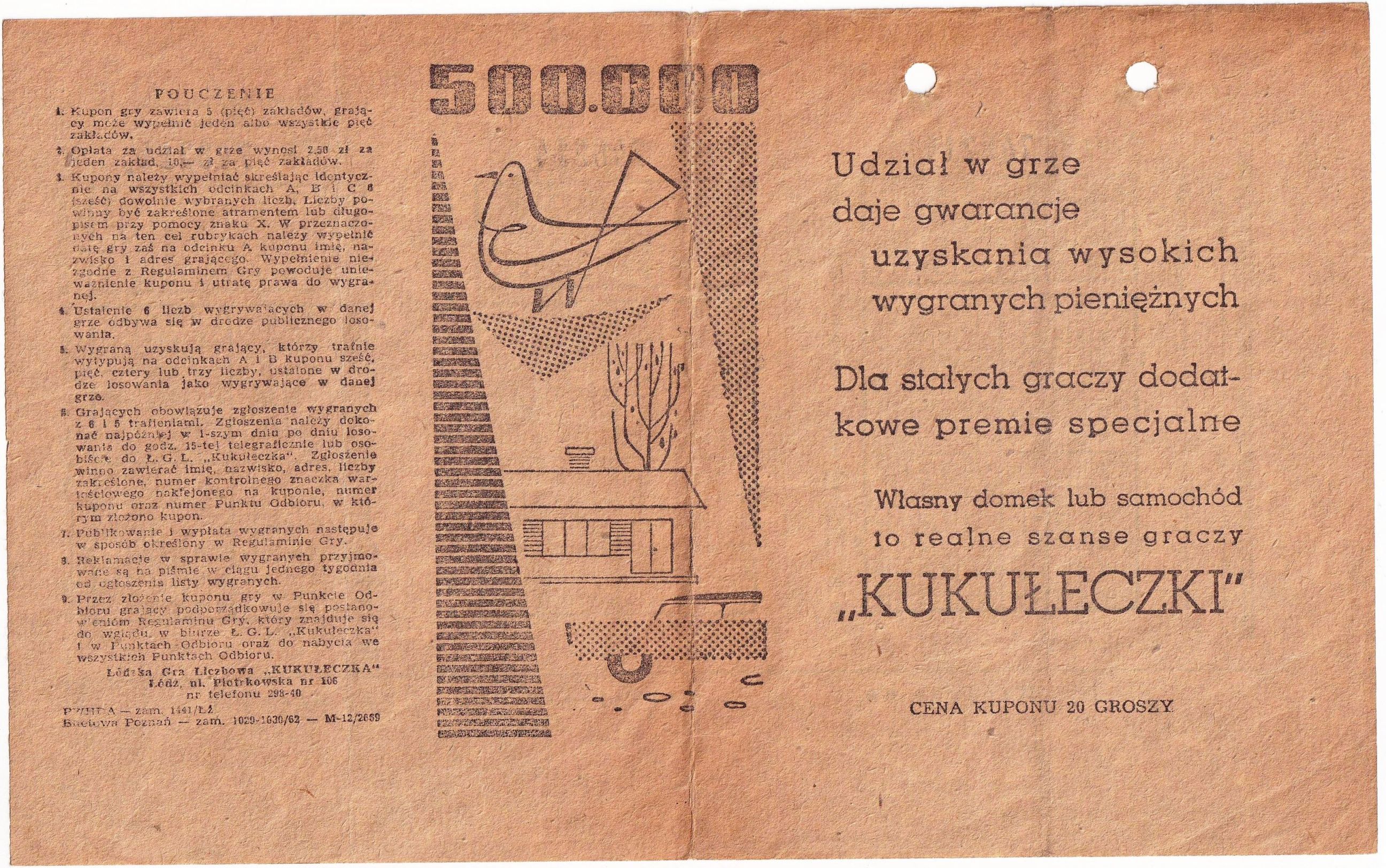 Widzę że interesujecie się tego typu rzeczami. Mi się to nie przyda może ktoś chciałby na własność? Jest to jedna karteczka niewypełnionej Kukułeczki z roku 196...