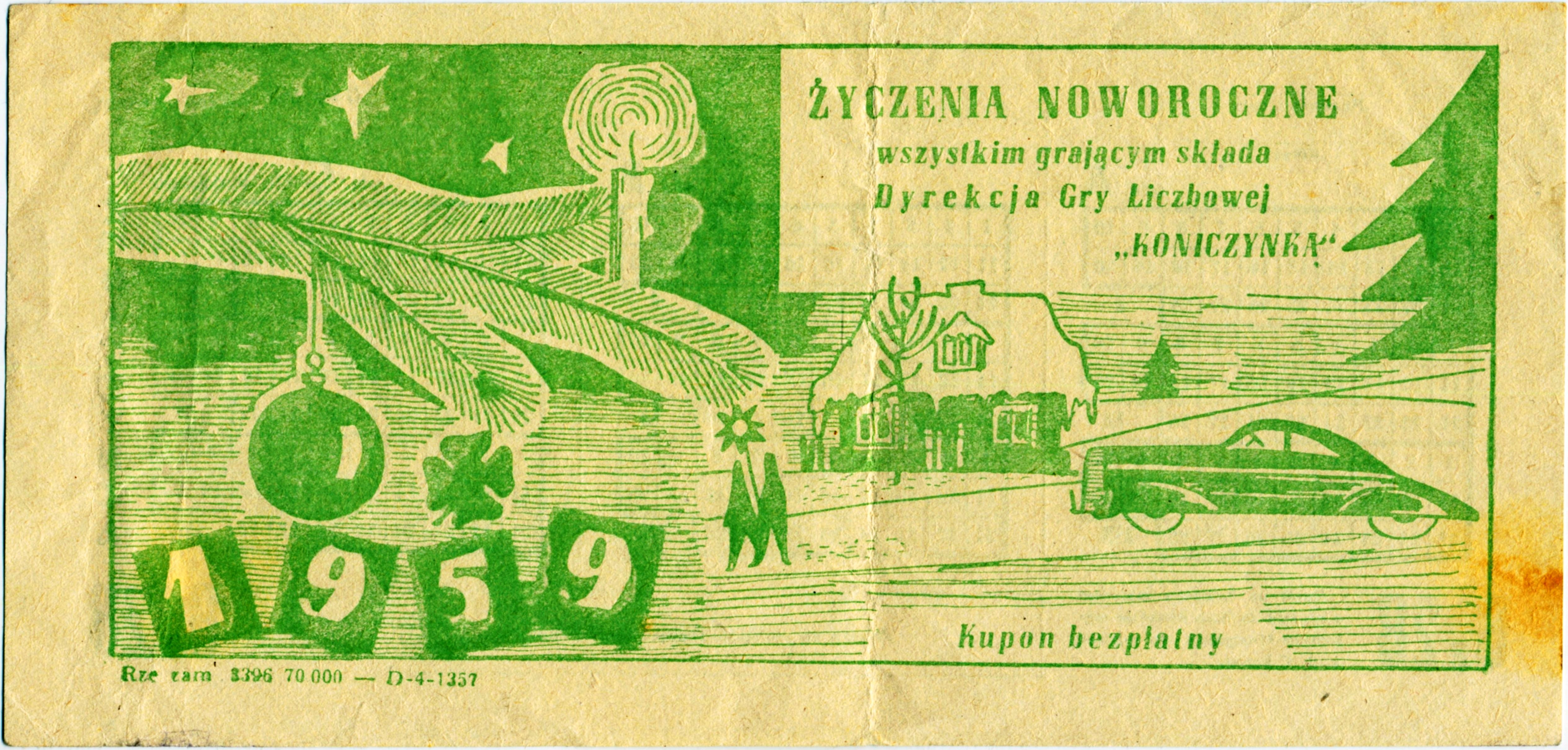 Dziś Kupon z Rzeszowa do Gry Liczbowej Koniczynka z 1959r.