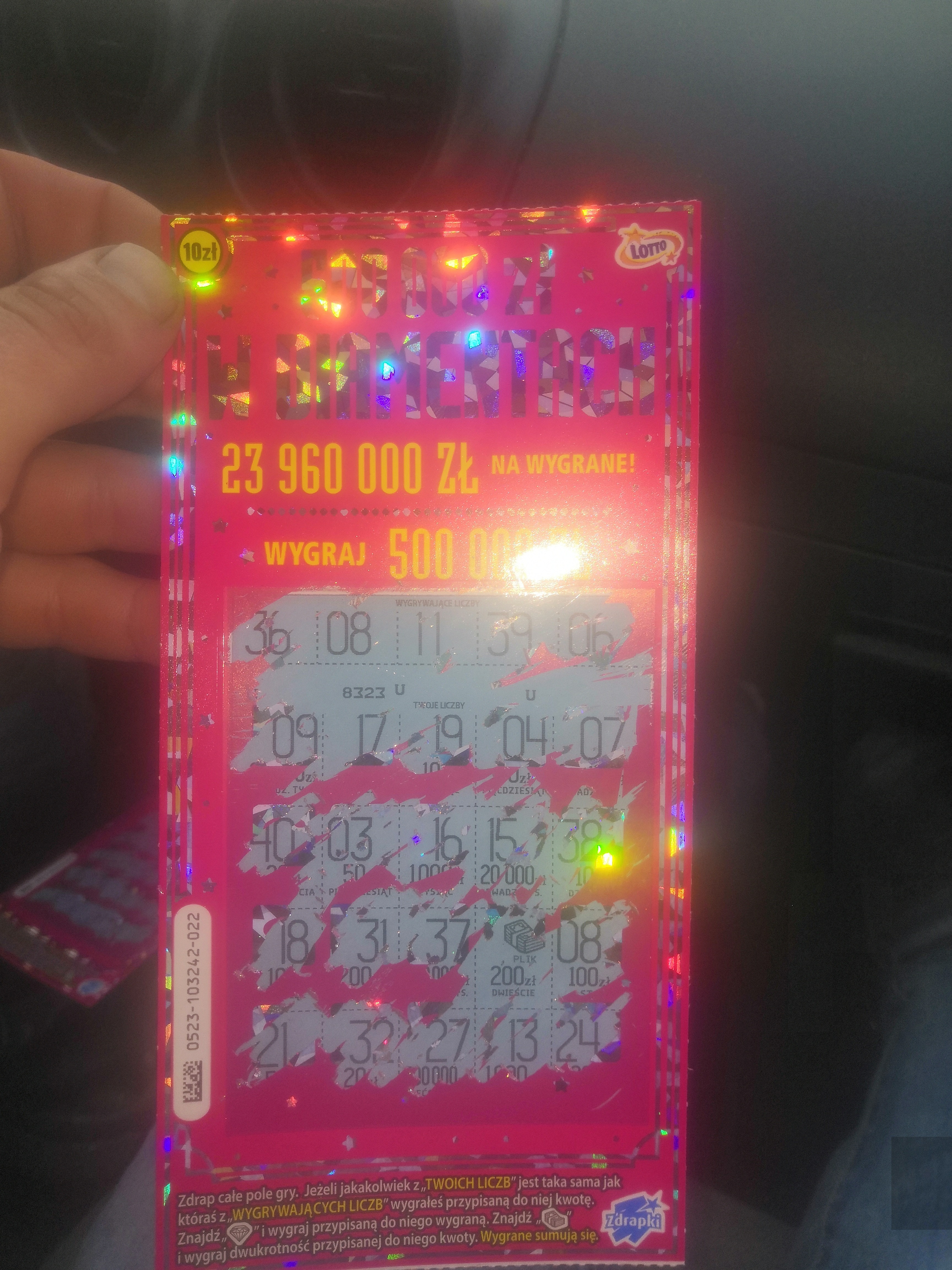Gratulacje dla użytkownika mateo20095 za wydrapanie 500 zł w zdrapce 500 000 zł w Diamentach [523] .