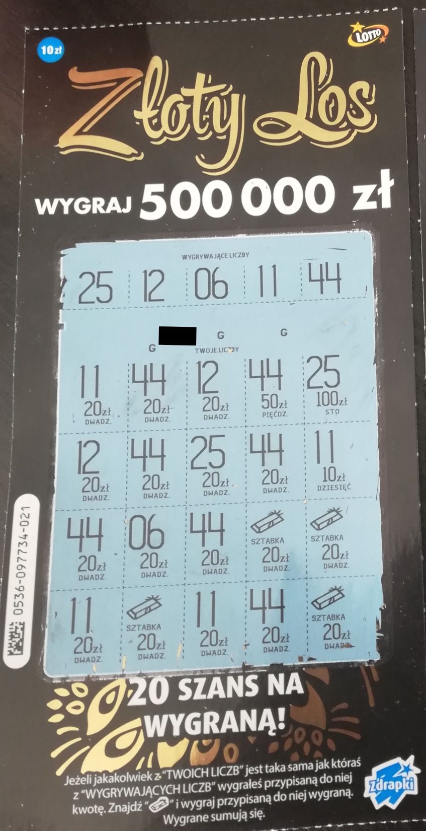 Gratulacje dla użytkownika LadyMia za wydrapanie 500 zł w zdrapce Złoty Los [536].