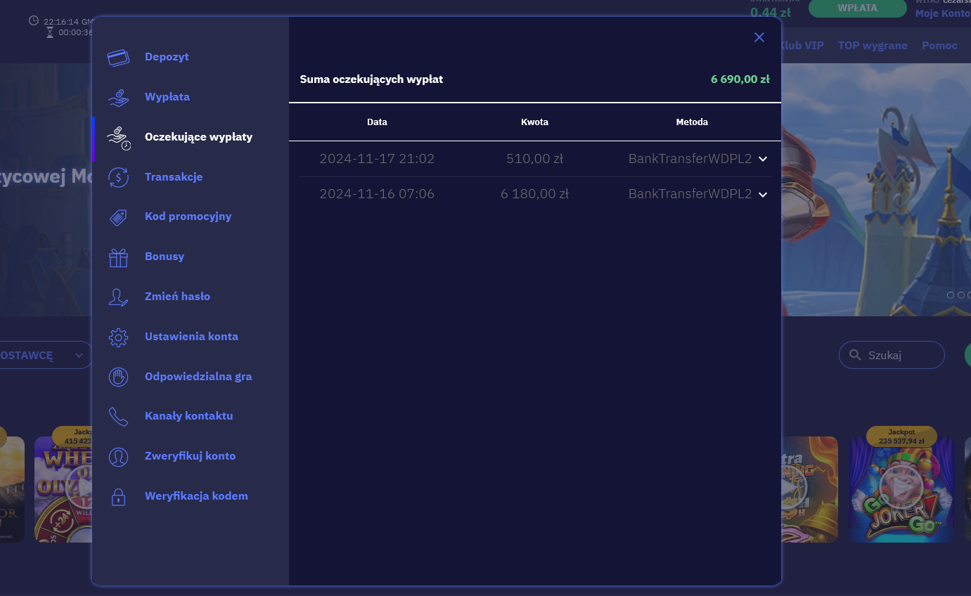 PS. Dziś kolejna wpłata ale już większa na 500zł i w tej samej grze wpadło 8000zł
