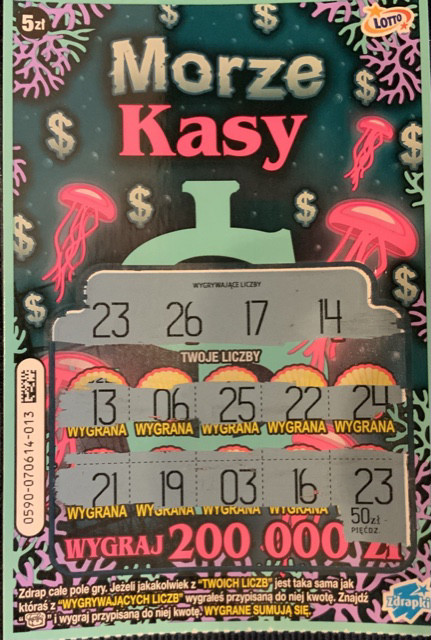 Miałem nie kupować tej zdrapki, ale nie było dużego wyboru to wziąłem zwykle pechowy niulowy nr. Chyba się przeprosimy z tą zdrapka za te 6 losów od 200 tyś
