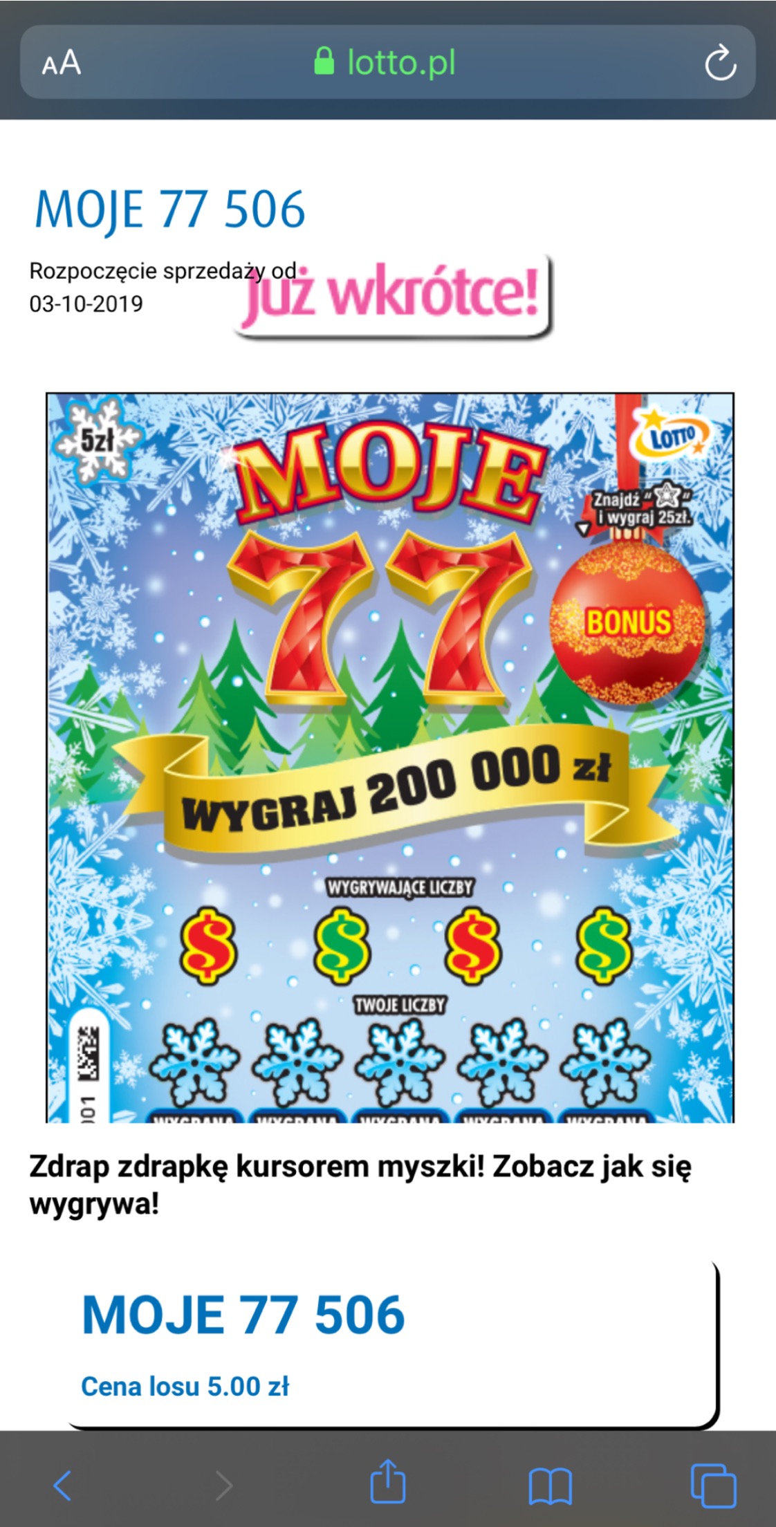 Wrzucili już na stronę ale tym razem sprzedaż okrojona bo tylko pół zdrapki jest hahha