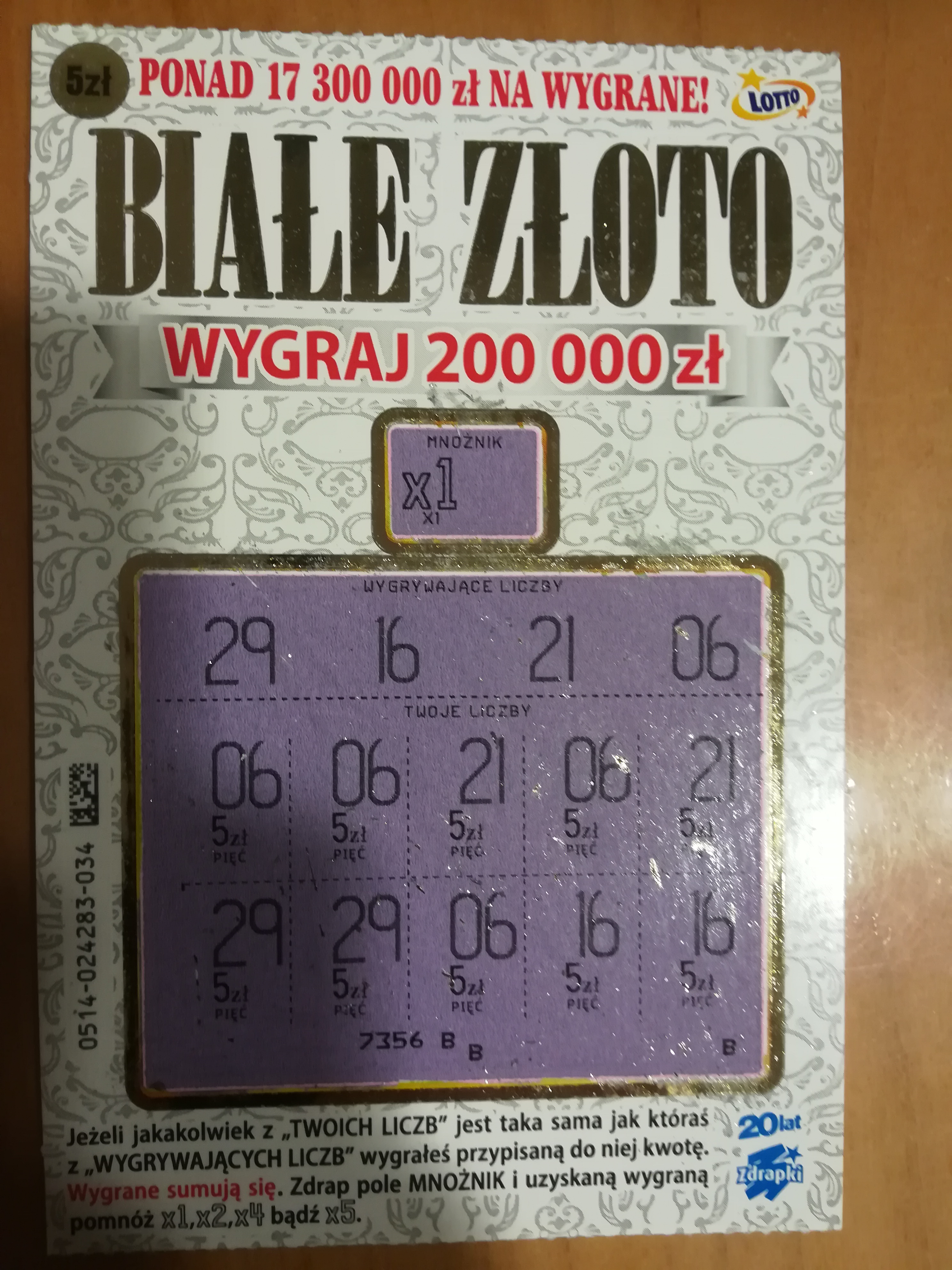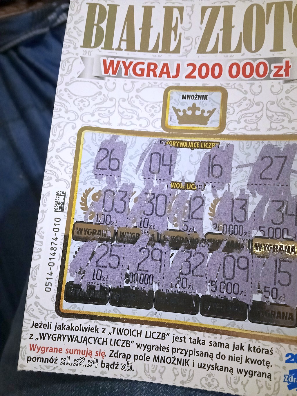 Prawie robi wielką różnicę ale jestem coraz blizej:-) miałem iść jeszcze raz ale szwagier przyjechał i jakoś się nie chciało. Nie wiadomo czy wybrałbym ten numer ale jakaś szansa była. W sumie z tej paczki kupiłem około 10 zdrapek.