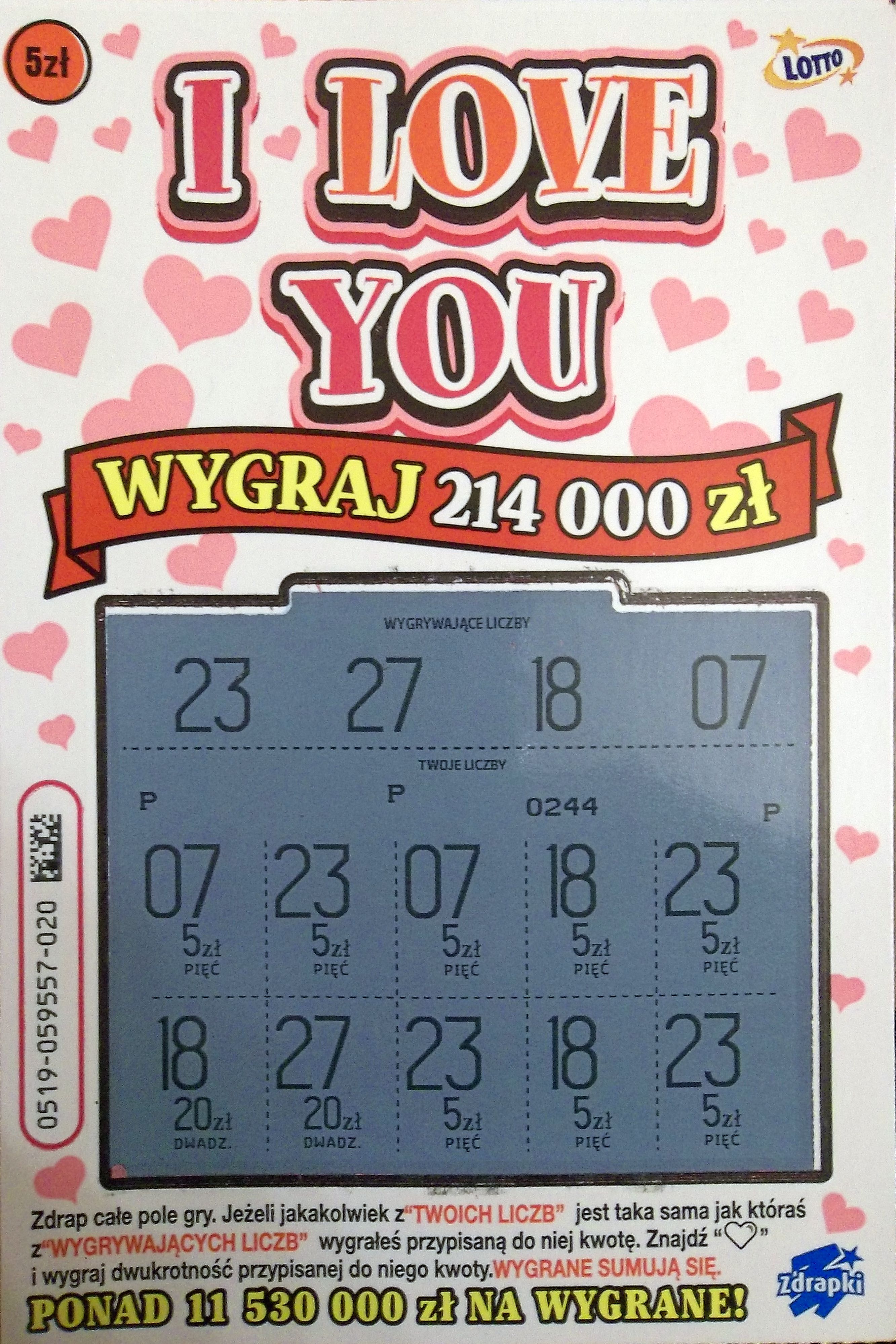 U mnie dzis na 2 sztuki w jednym punkcie bylo 40 w jednej i 20 zl w drugiej zdrapce.Później wymieniłam na dwie kolejne jedna pusta w drugiej 10zł.