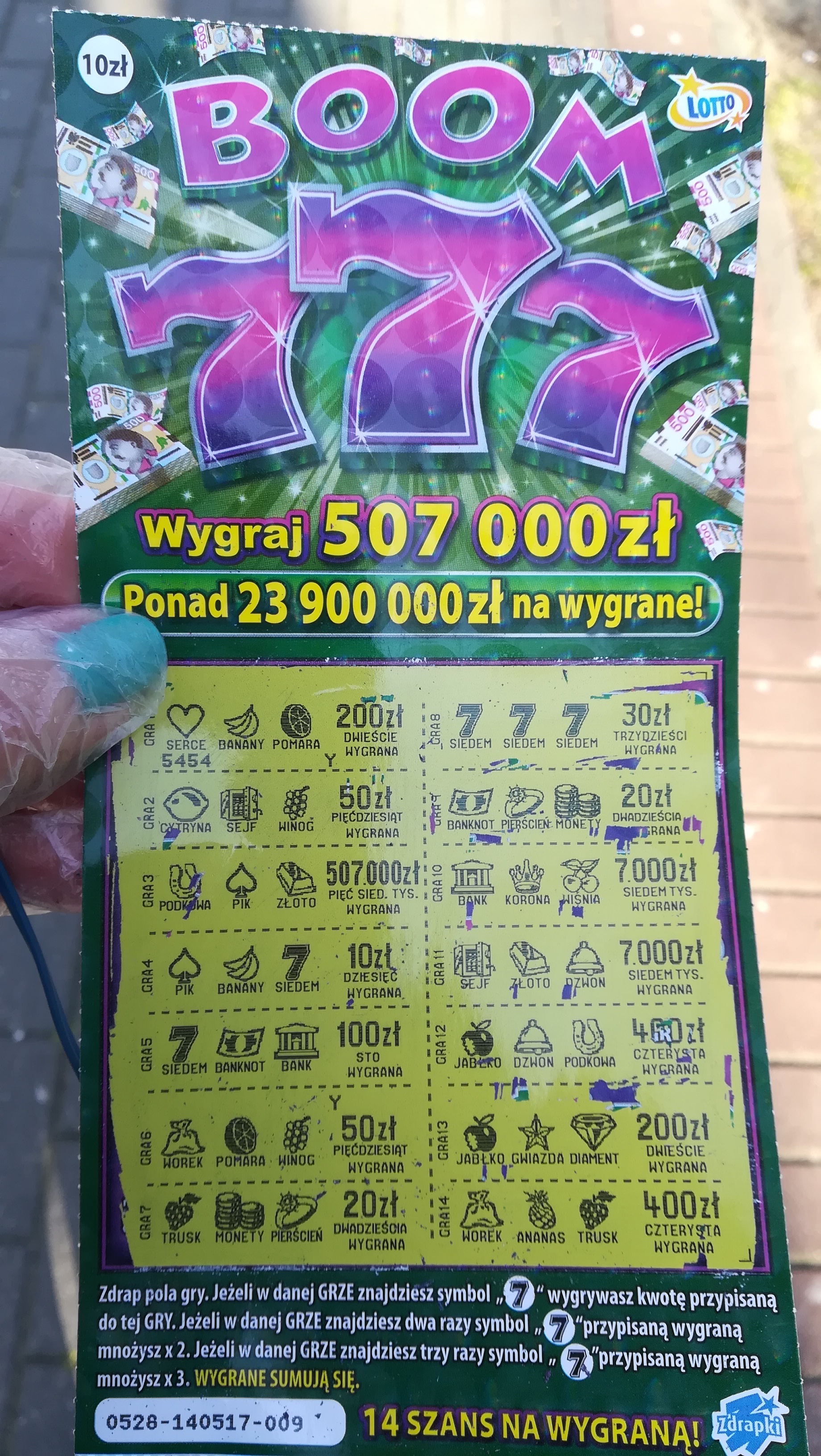 Rano kupiłam cztery sztuki.Zdrapki nr 001, 002 były puste, w nr 024 było 30 zł a w nr 025 10 zł.