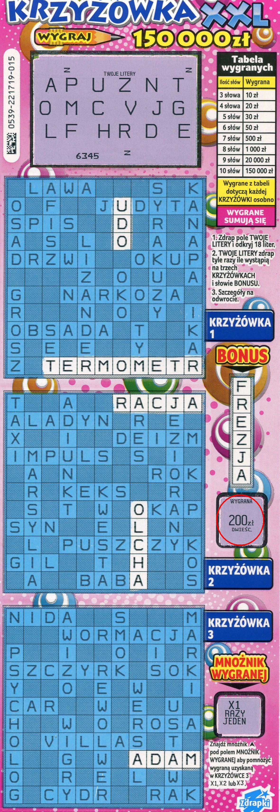 Dopiero po zdrapaniu literek kontrolnych zorientowałam się, że bonus jest pełny