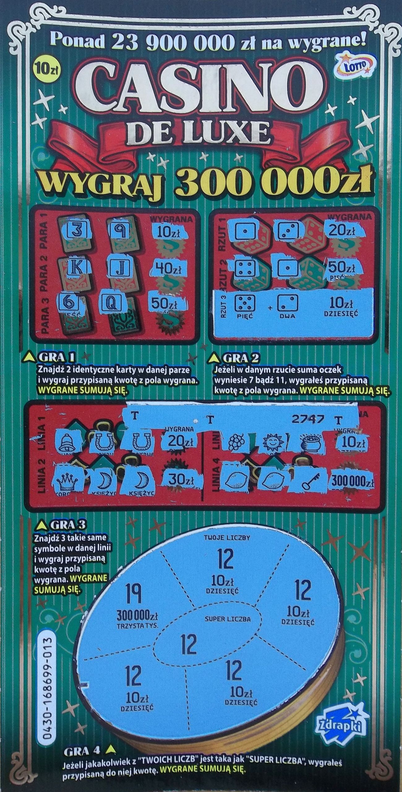Ponad 30% nakładu nadal w obiegu a zdrapka już wyczyszczona z nagród głównych i nagród II stopnia. Zostały najwyżej kartoniki mające po 1 000 zł.