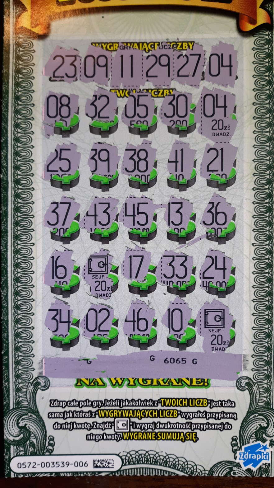 wczoraj kupiłem paczke, jej bilans całkiem dobry, w sumie 280zł: 1x200zł,1x40zł,2x20zł