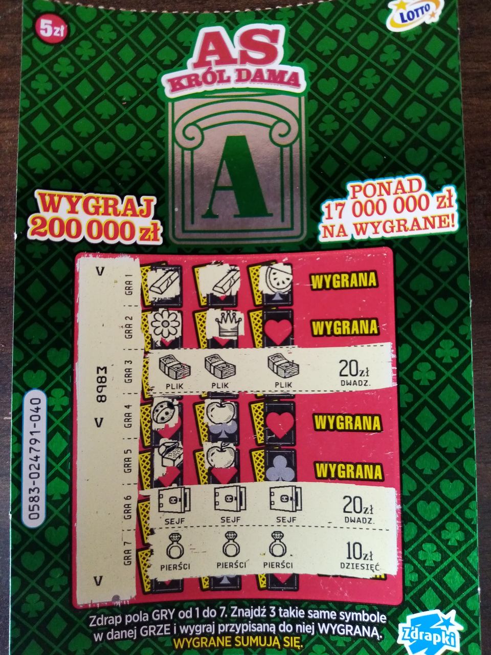 Najpierw trafiłem 10zł w asie z nr 43, poszedłem wymienić i wpadło 20zł w asie z nr 22