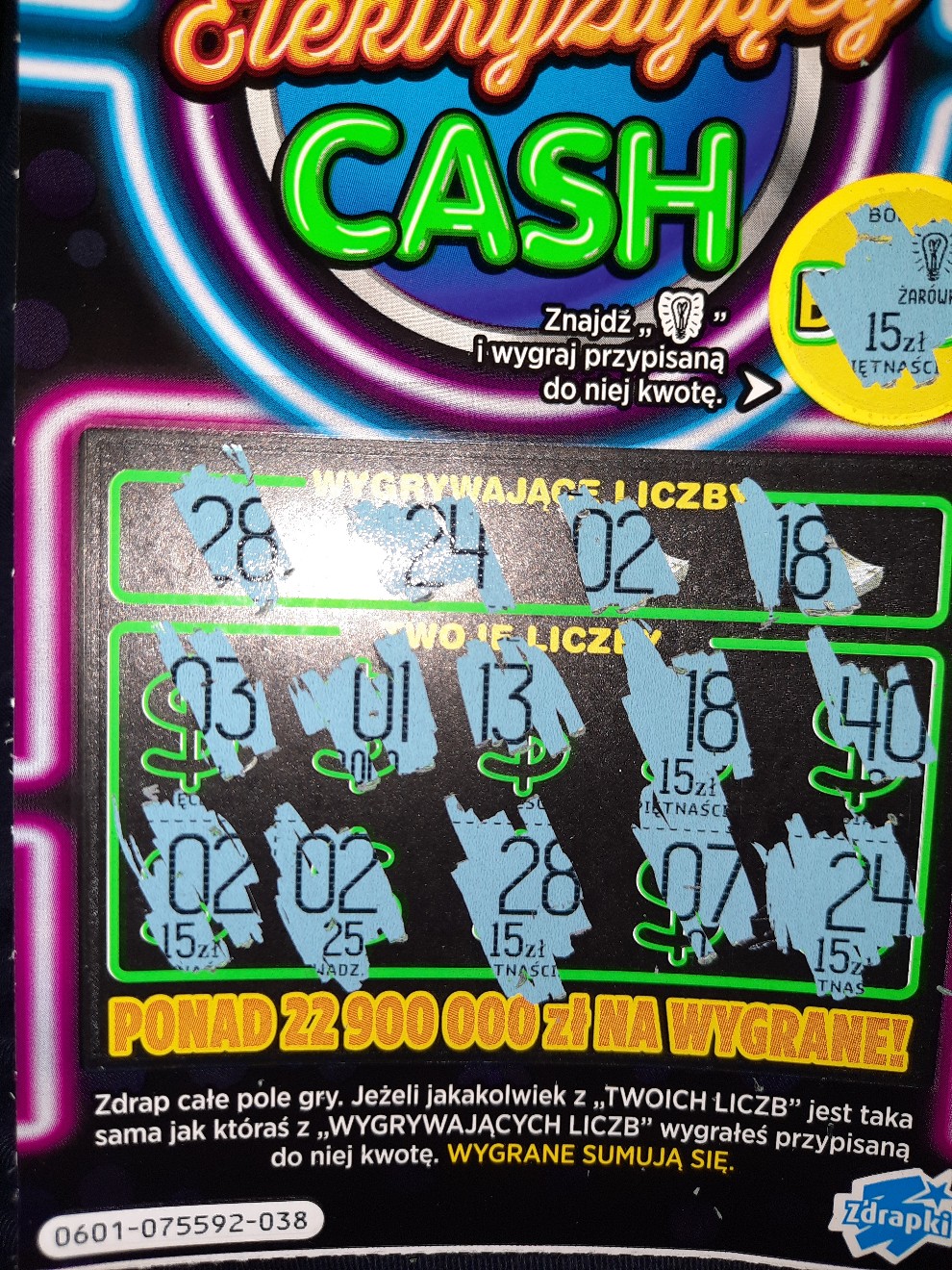 Skusiłem się na 2 sztuki, nr 40 pusta nr 41 25zł, także miło, aczkolwiek nie jest to moja ulubiona formą zdrapek