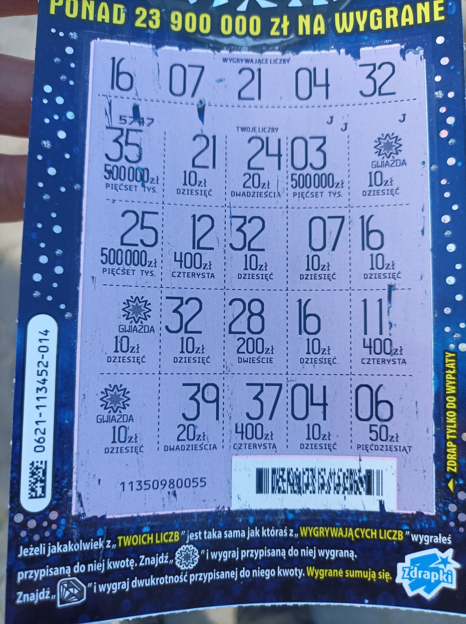 Teraz widze, że wszystkie nowe zdrapki, mają jakieś dziwne liczby. Chyba coś im się rozjechało.