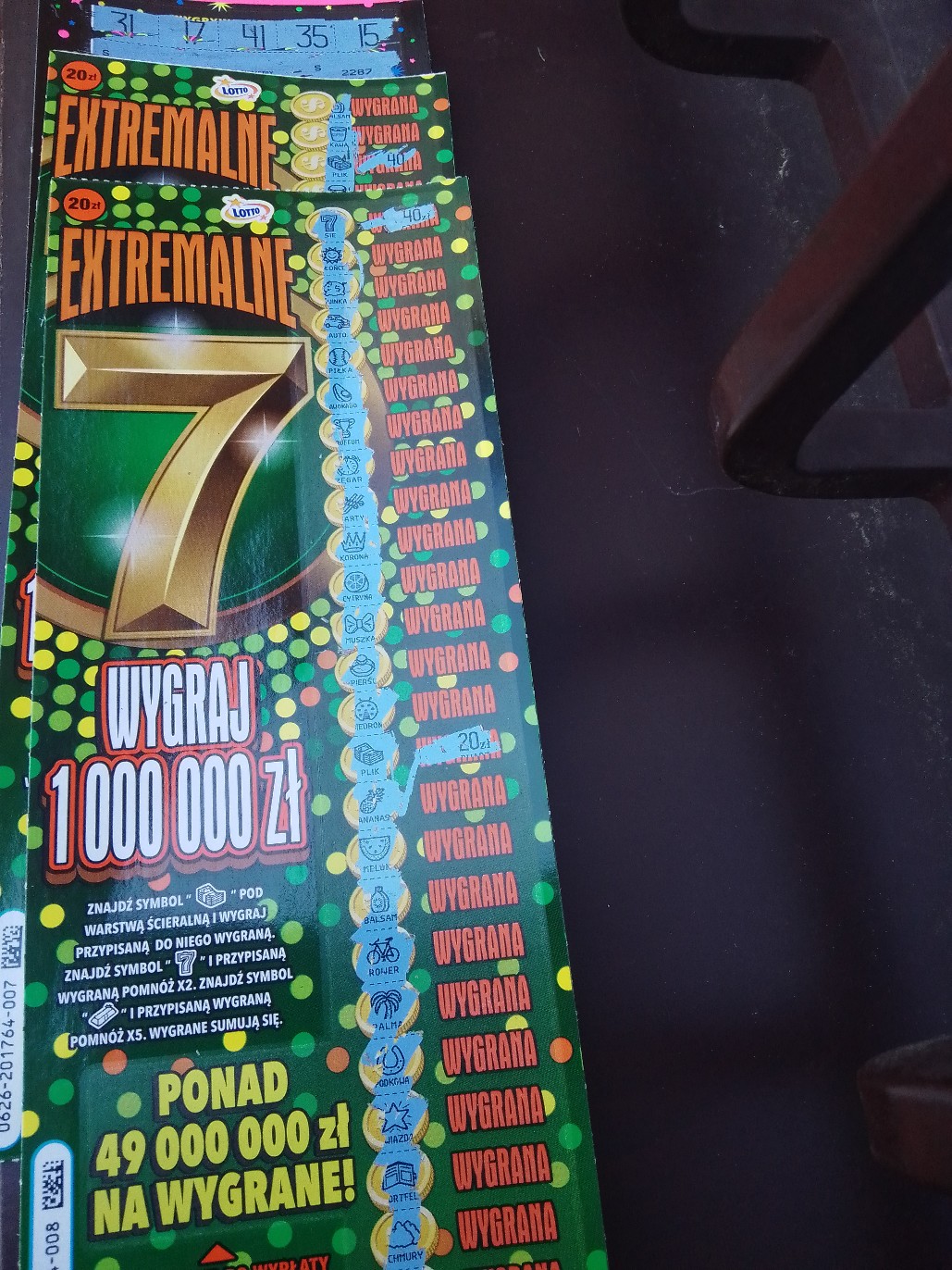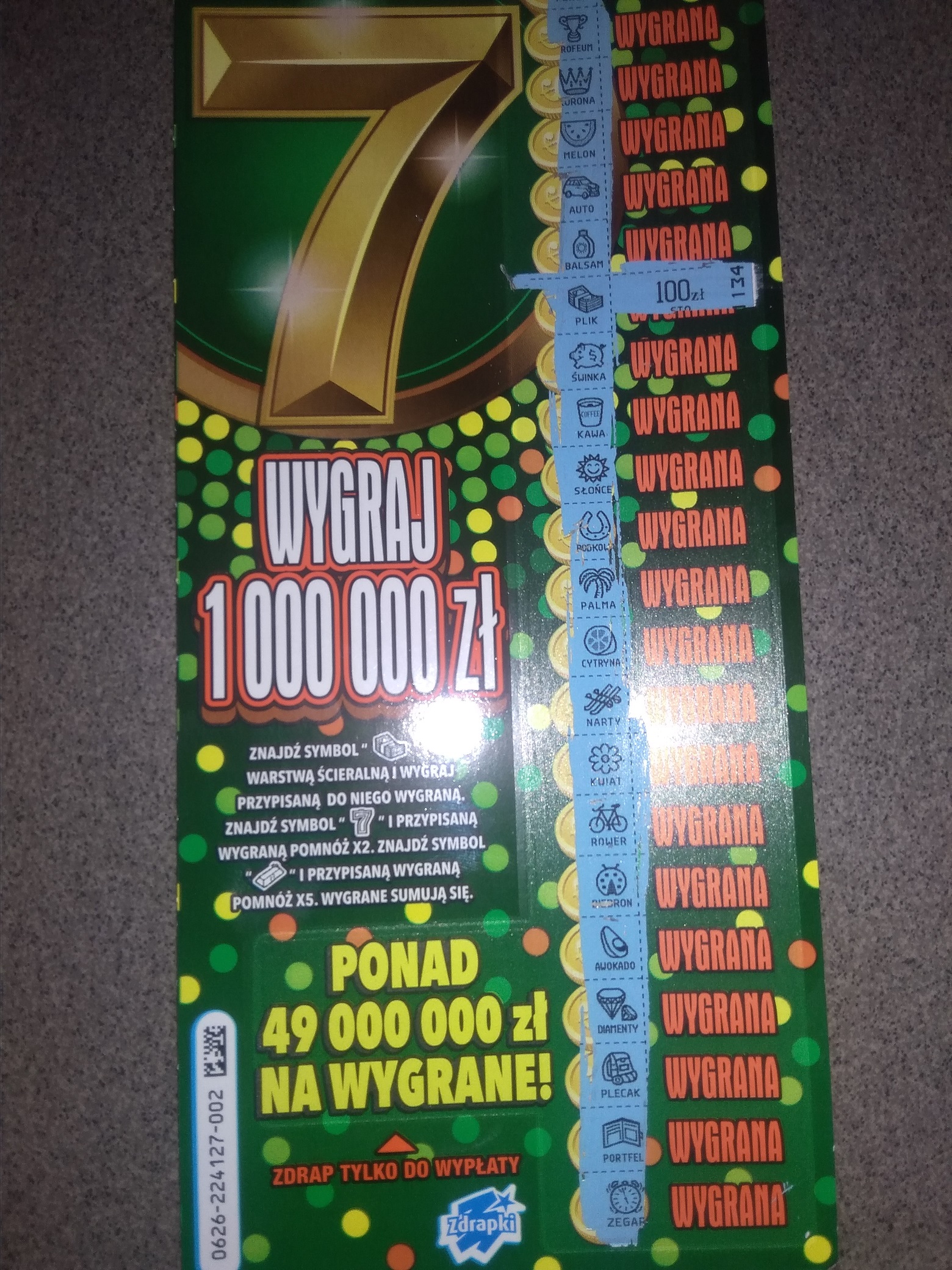 Ja tam za 20 od święta mega linie drapie, tak to 5 i 10, oraz krzyżówka za 3PatrysMM pisze: ↑19 maja 2022, 14:10Tabelka krótko i na temat nam wyjasnia, że nie warto kupować ta zdrapkę żeby trafić na stówę, która znajduje się ledwo co w 3 paczce podziękuję, nie warto na 40 zł zachodujedna z najsłabszych premier za dwie dychy zostanę przy mega liniach i super milion więcej drapania i więcej zabawy.
