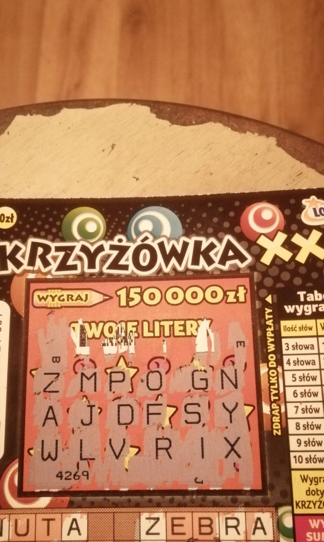 Od debiutu kupione z 20 szt, trafione tylko 10 zł... Tak jak lubiłam tą zdrapkę tak więcej jej nie kupię