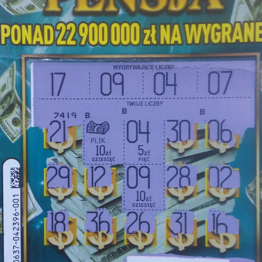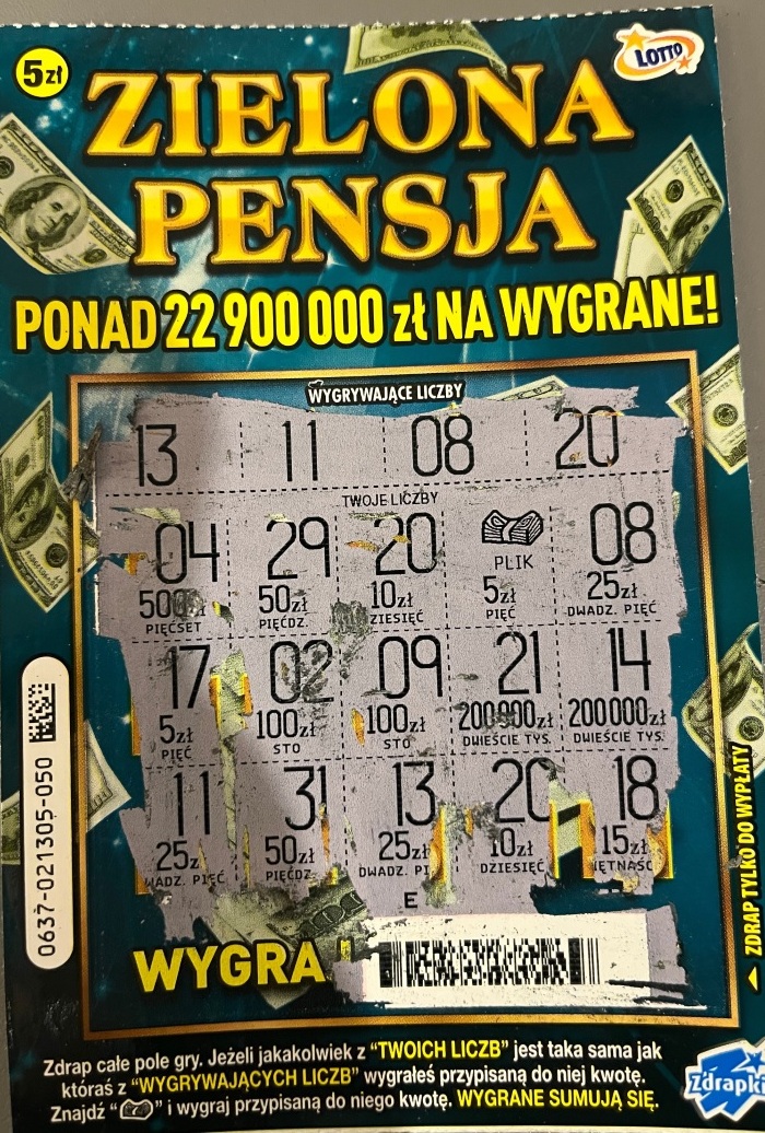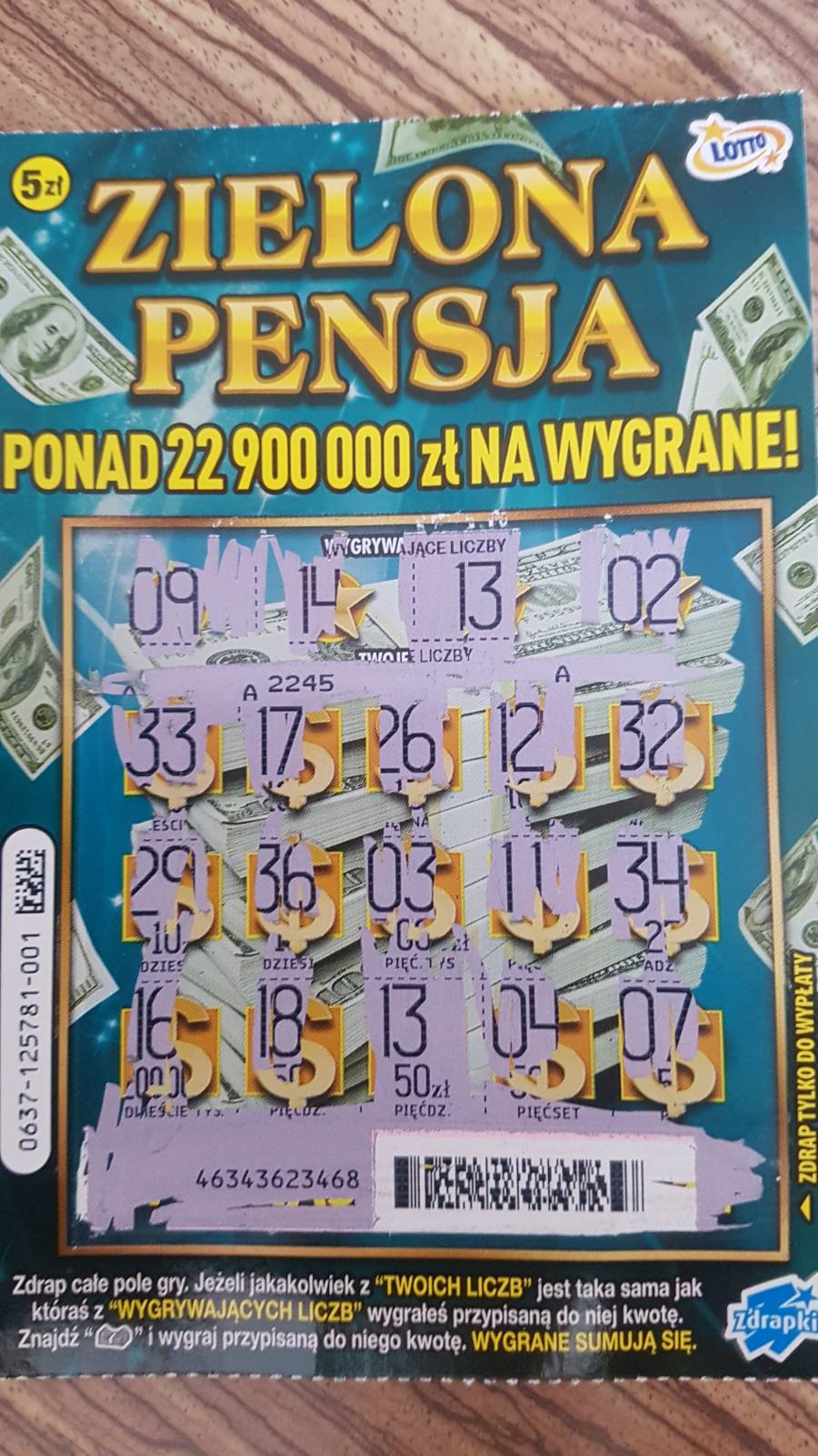 Podczas polowania na ŚO poprosiłem po jednej dodatkowej zdrapce i Pani w Górze Kalwarii podała mi jeden egzemplarz ZP i zobaczcie co wydrapałem