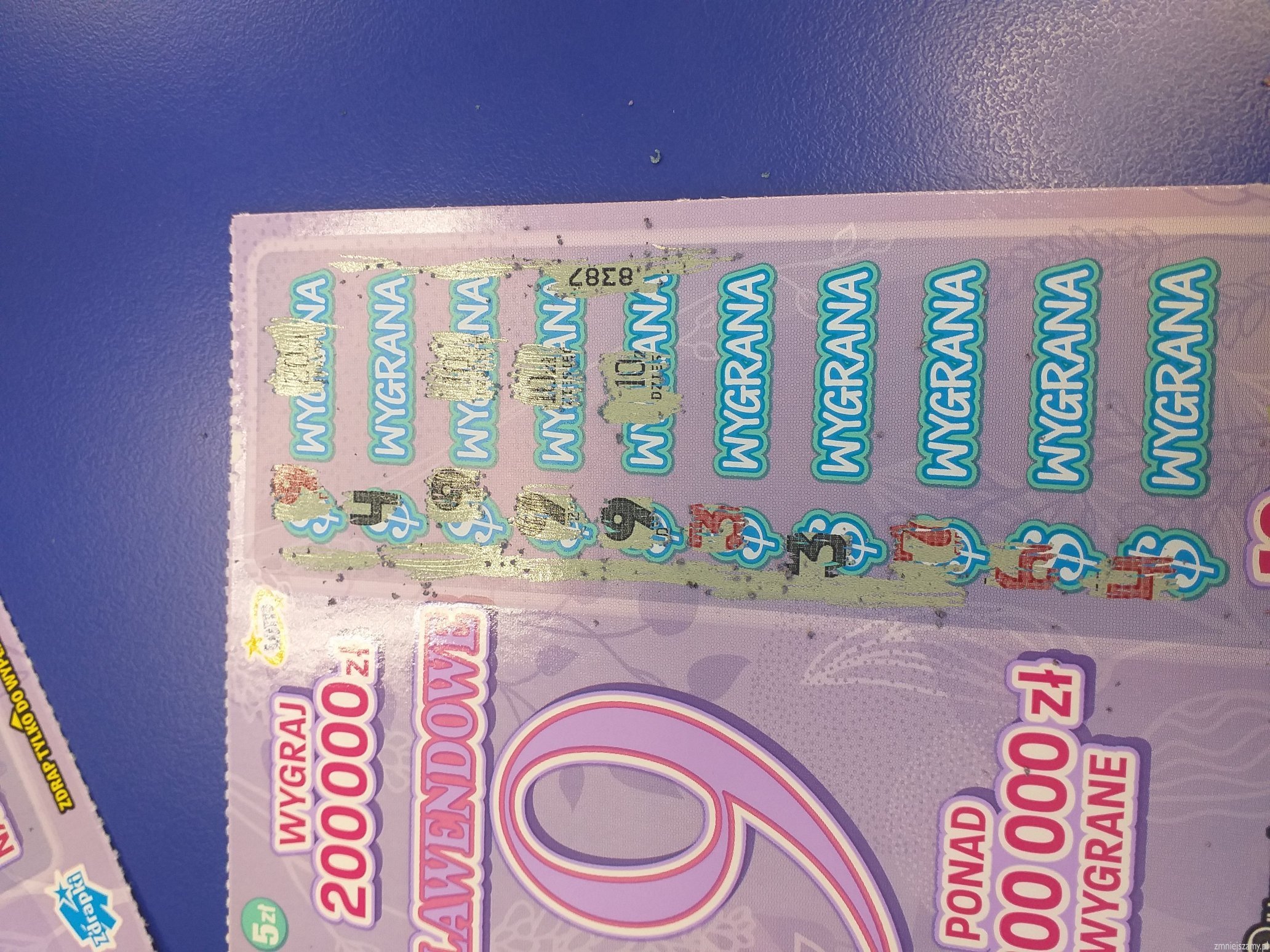 Bardziej mi się już podobały neonowe 9 po 2zł sprzed kilku lat, tam przynajmniej były wygrane z 9 na końcu np. 19zł, 29zł, 99zł, 999zł itd. W lawendowej 9 ułożenie stopni jest naprawdę nielogiczne, powinno być np. 90, 900, 9000, 199999