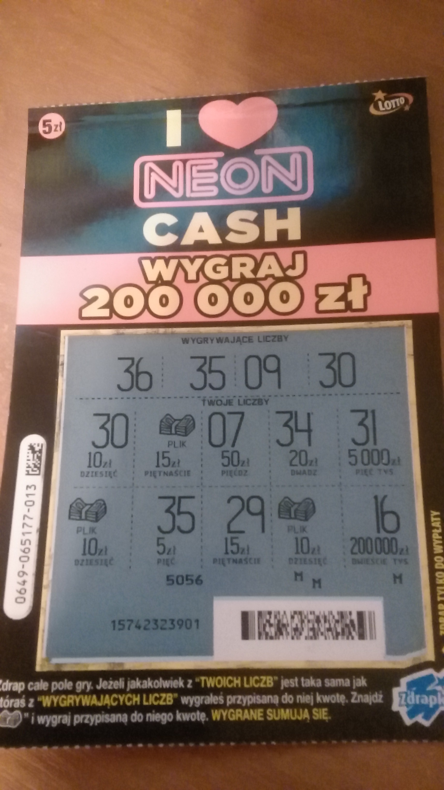 Wczoraj nie miałem pomysłu więc wziąłem 3 zdrapki. 1 pusta, 1x10zl i 1x15zl. Lekki plusik jest.