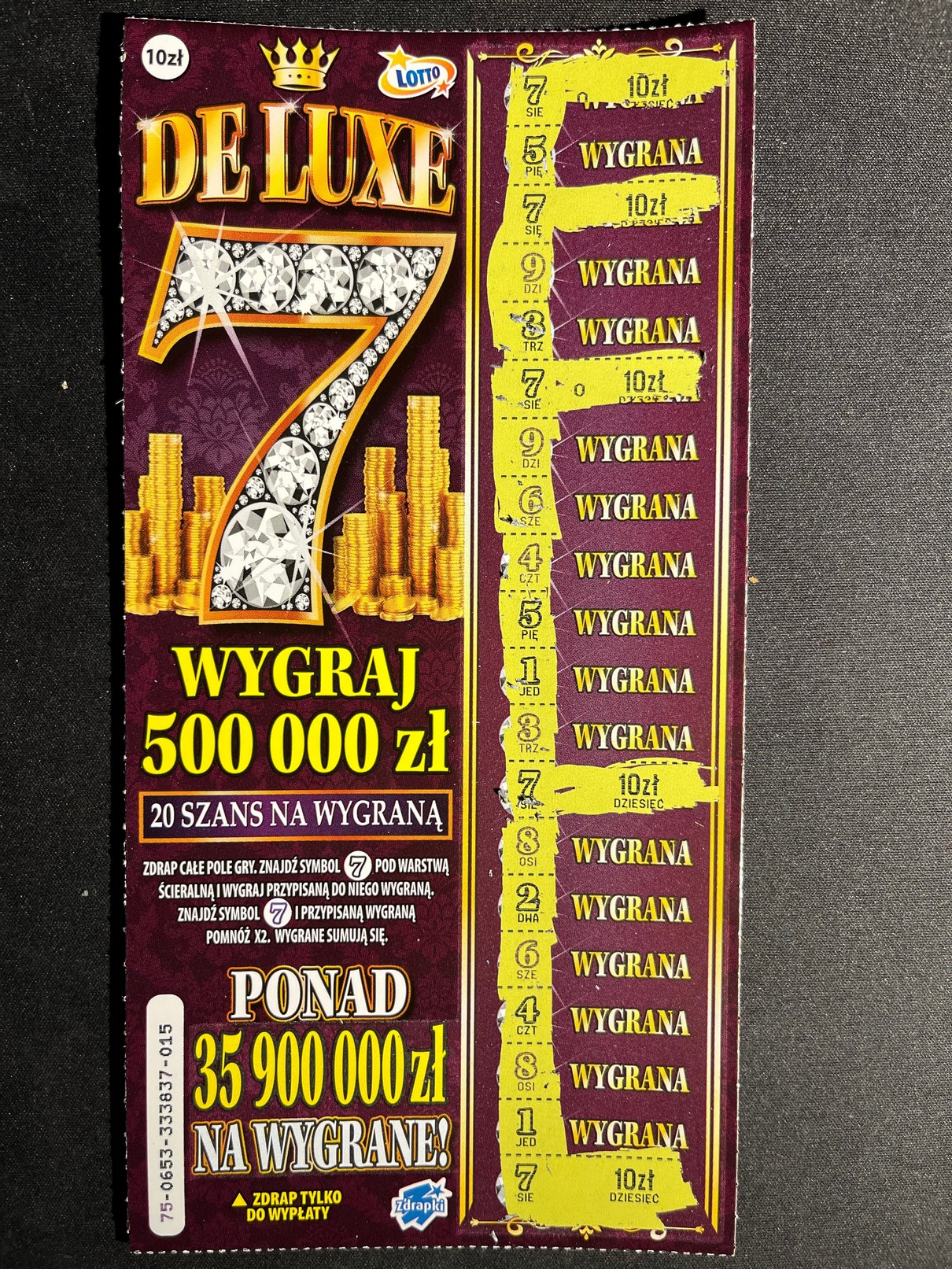 Kupiłem jedną sztuke na premierze i mam albo 10 zł albo 20. Mam problem z określeniem która to siódemka jest. Chyba ta co podwaja.