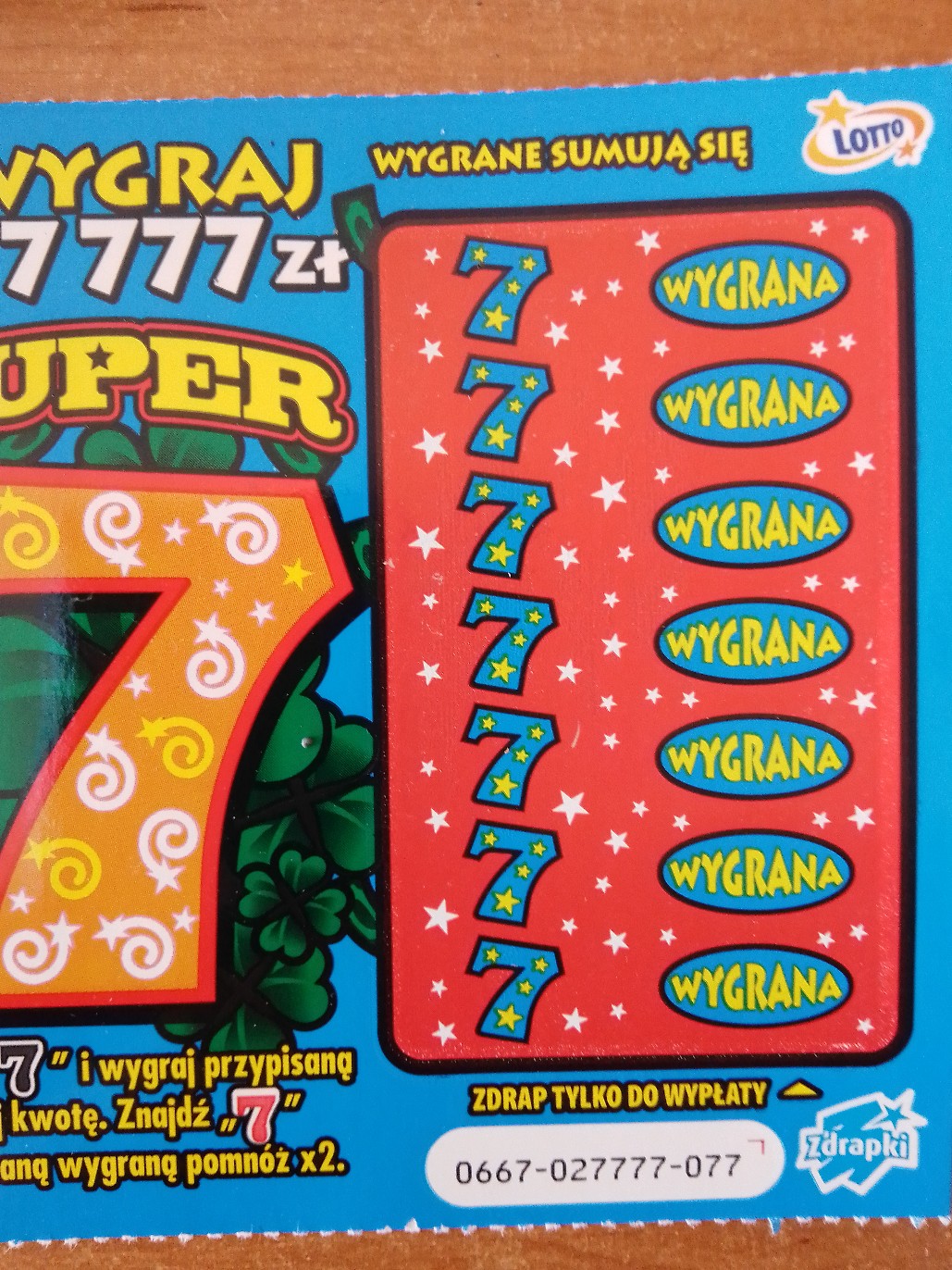 Swoją drogą to nr 077 wbrew pozorom nigdy nie był szczęśliwy w tej zdrapce