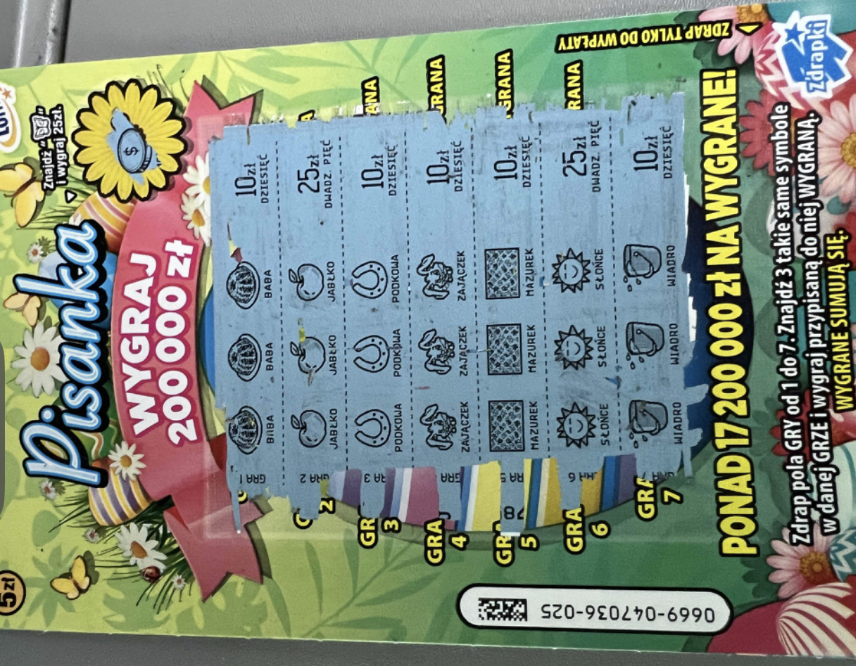 Ja w poniedziałek sprawdzę tą zdrapkę, w najbliższym tygodniu będą miksy