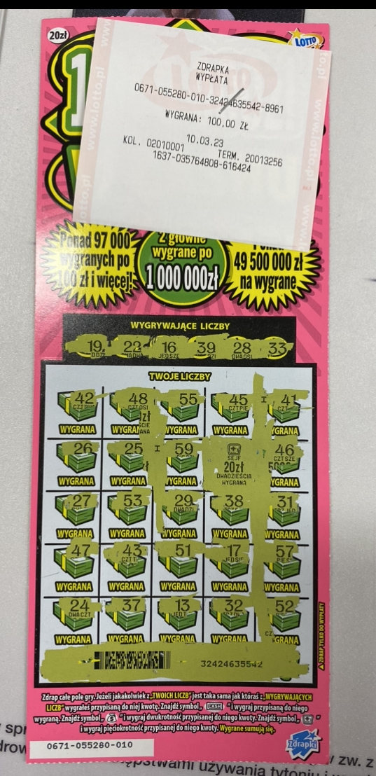 Tradycyjnie zdrapka za 20 zł oprócz głòwnej nie ma nic do zaoferowania.