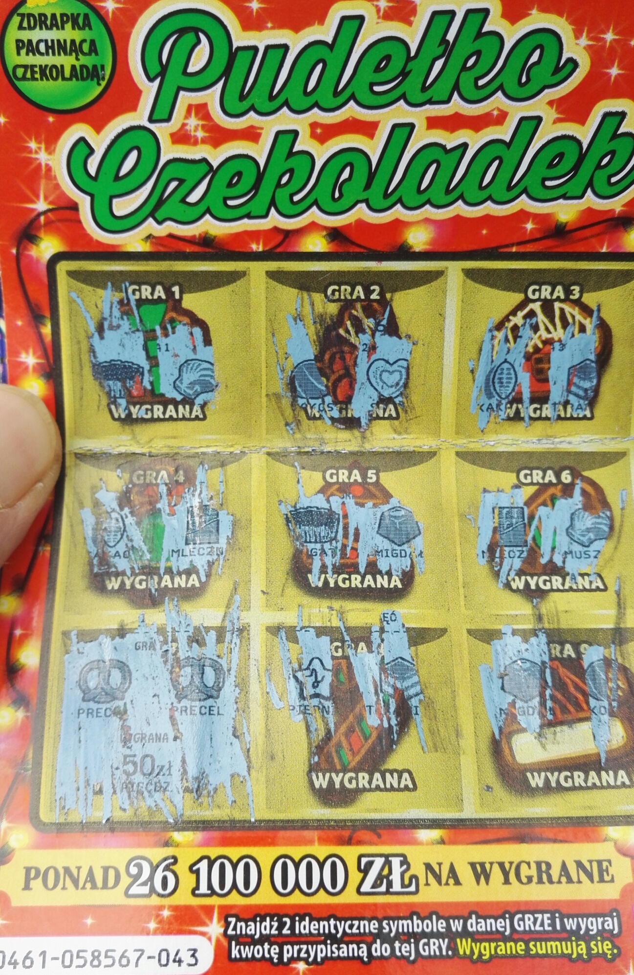 Gratulacje jeszcze trochę smakołyków można wydrapać w tej zdrapce. A wiadomo 50 zł w zdrapce za 5 zł to już coś. Tym bardziej że w świątecznym odliczaniu taka suma to też już "gruba" wygrana