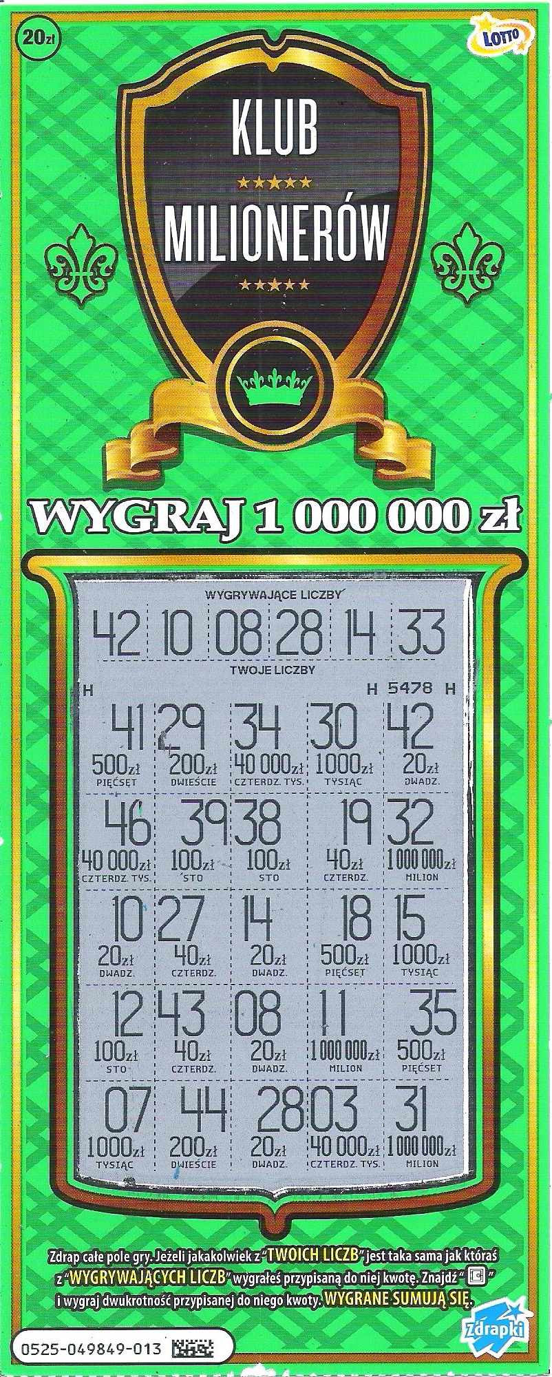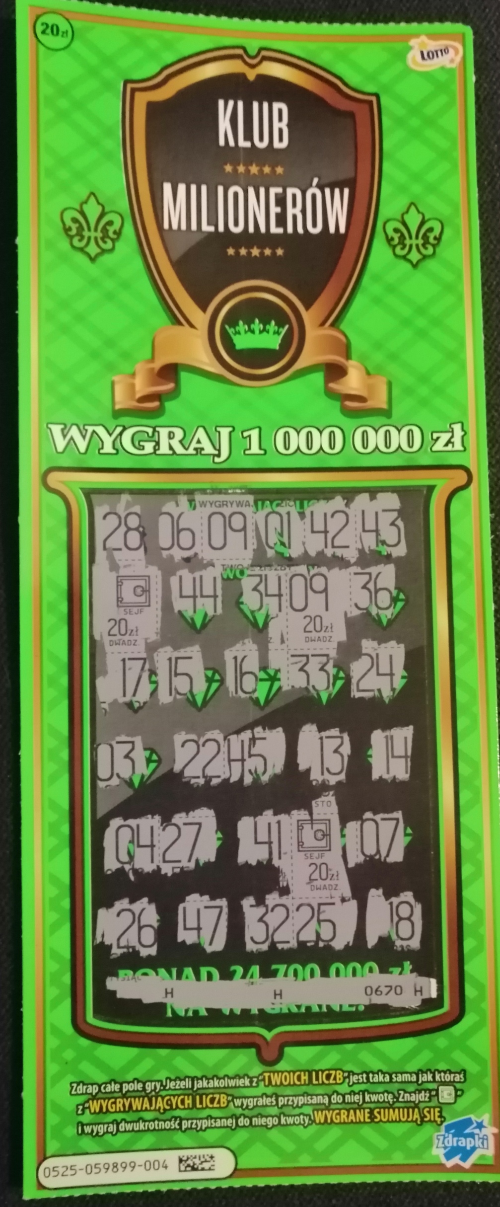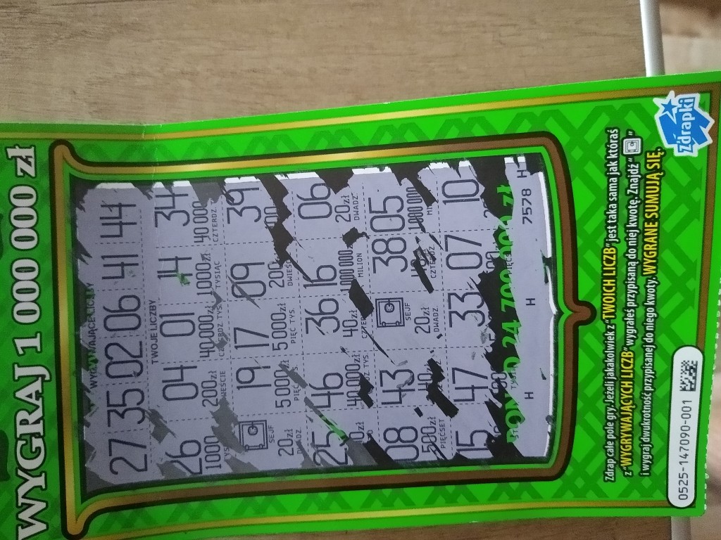 problem jest taki że nie zawsze do każdej zdrapki mam dobre numery bo w niektórych zdrapkach na przykład tej 7 za 5 zł wygrane rozkładają się w miarę równomiernie i żaden numer nie przoduje.