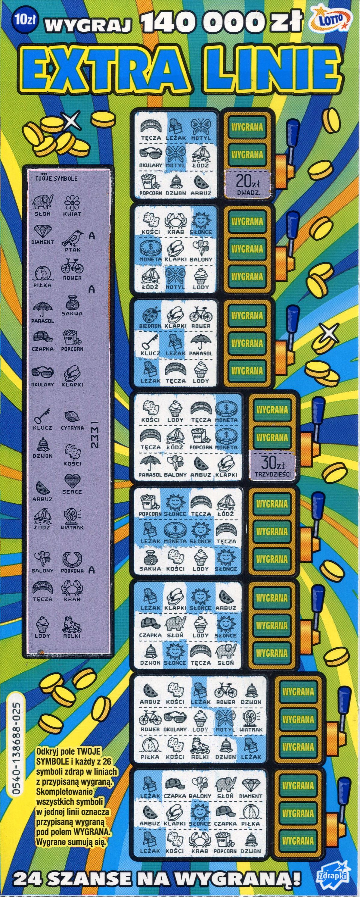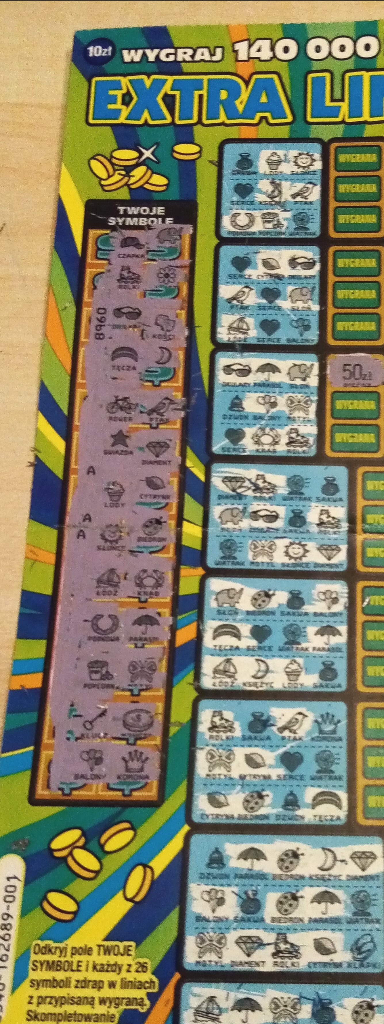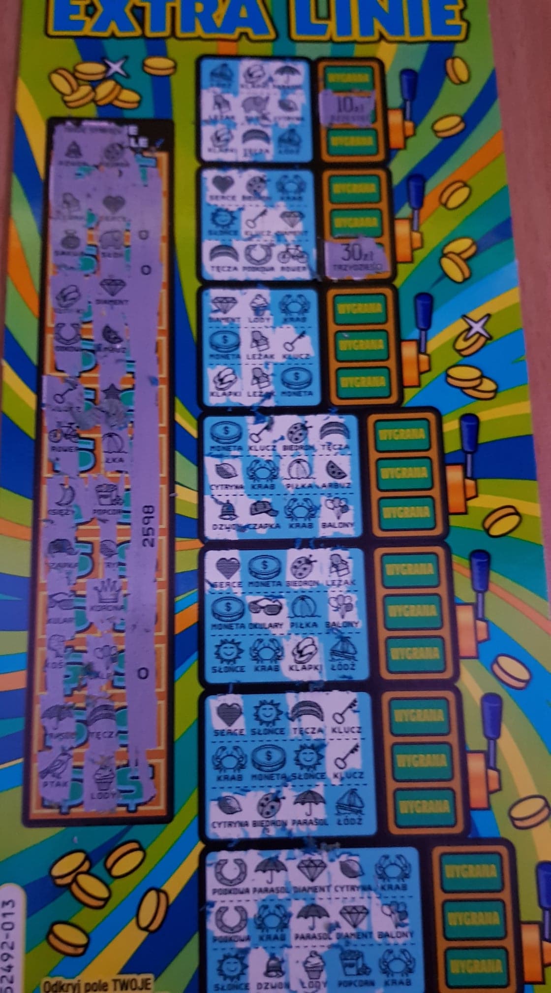 Ostatnio 30 zł w nr 016 z Żabki i 30 zł w nr 018 (zdrapkomat)