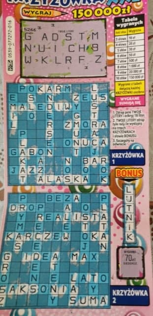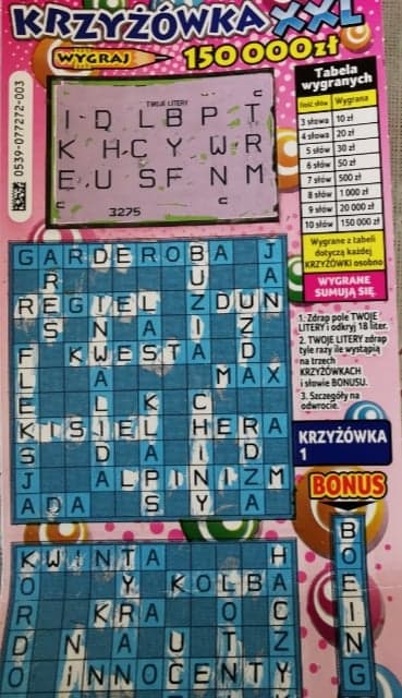 Z braku Wielkiej Krzyżówki w sklepie dziś dostałam XXL nr 11, wygrana 30 zł.