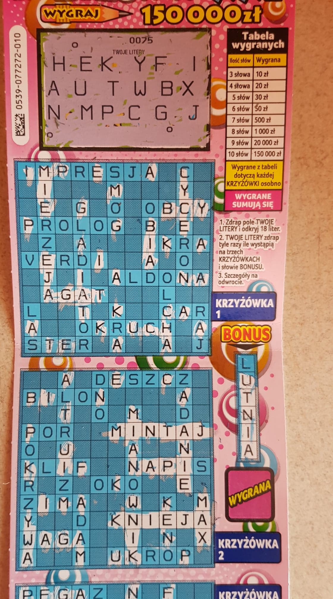 Mama dziś wzięła 3 zdrapki - 3 pełne, szok. 70zł, 50zł i 20zł