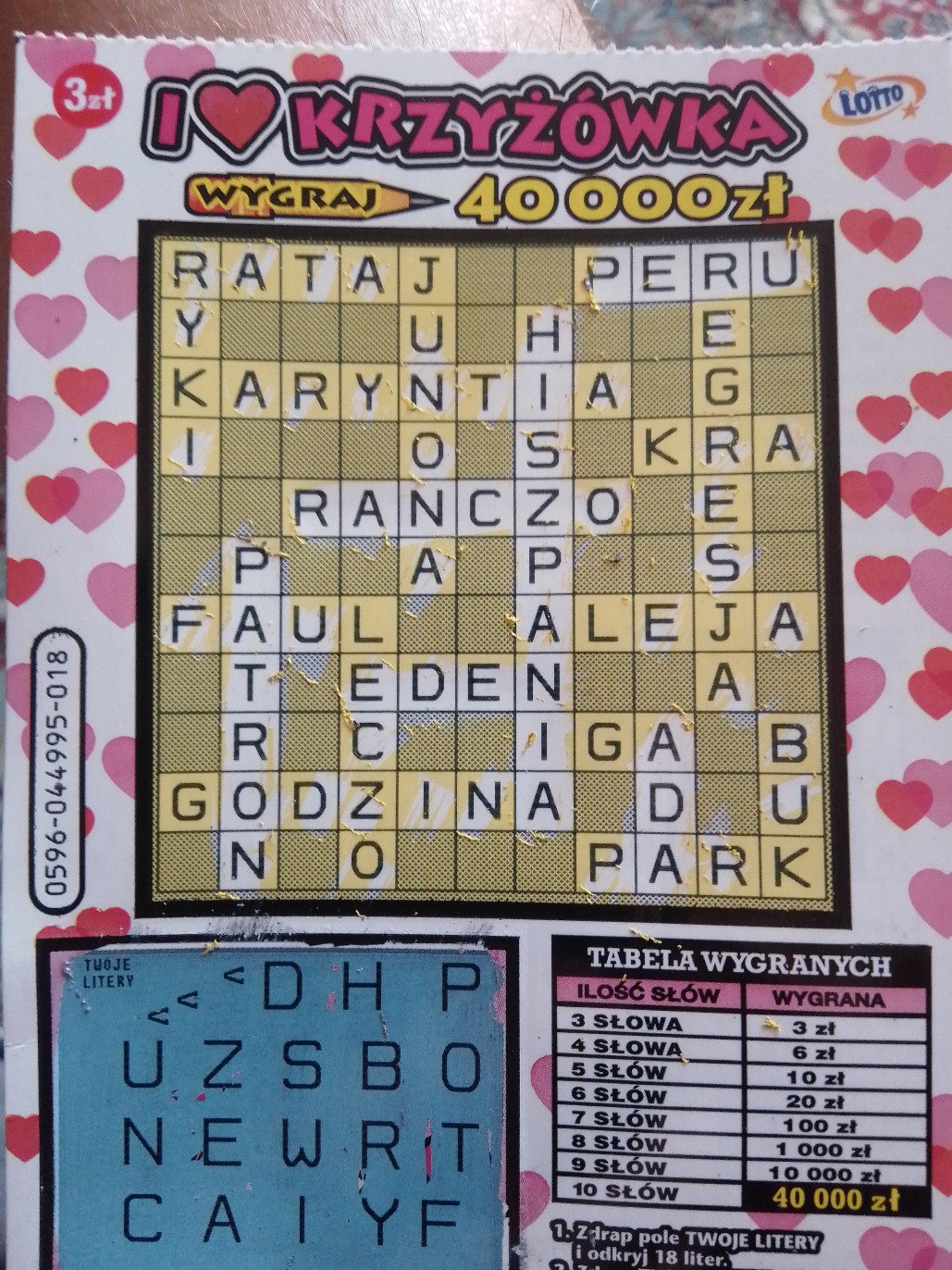 W jednym sklepiku znalazłem moją ulubioną krzyżówkę i wziąłem wszystkie jak leci, łącznie 77 sztuk, nawet ciekawy nr paczki 138xxx. Od razu mówię że nie dam rady zdrapać wszystkiego od razu