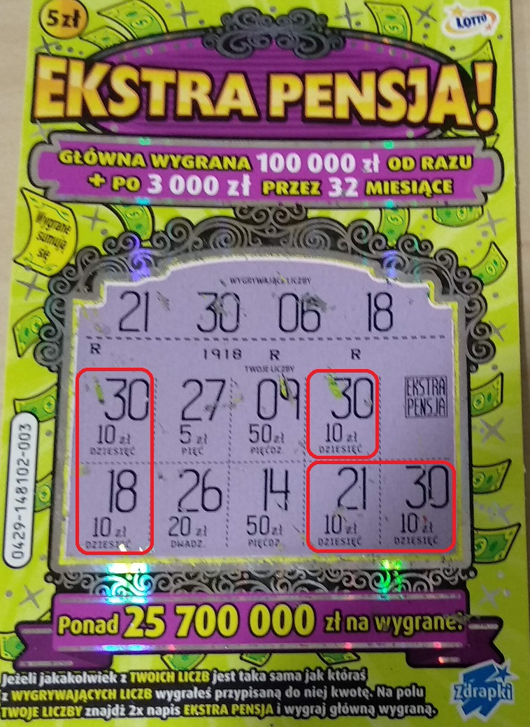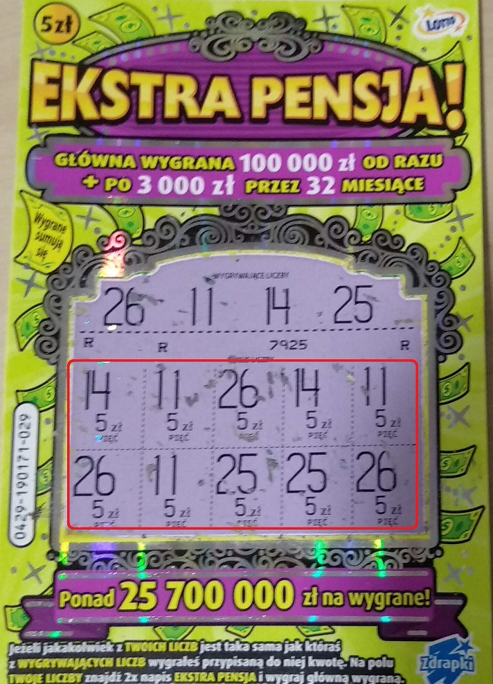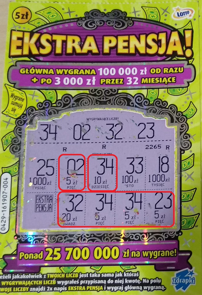 Ostatecznie kupione 13 zdrapek.