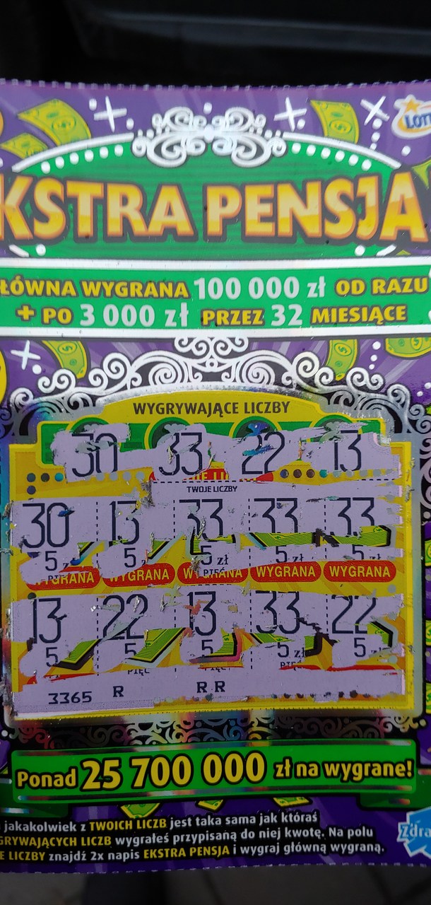 Stałem się trochę zdrapkowym "Januszem" i kupowałem po 1-2 zdrapce na tydzień. Najlepszy wynik 10 jura za 2. Reszta pustaki czy zwroty. Od 3 dni rozglądam się po okolicy gdzie jestem akurat i badam co w trawie piszczy