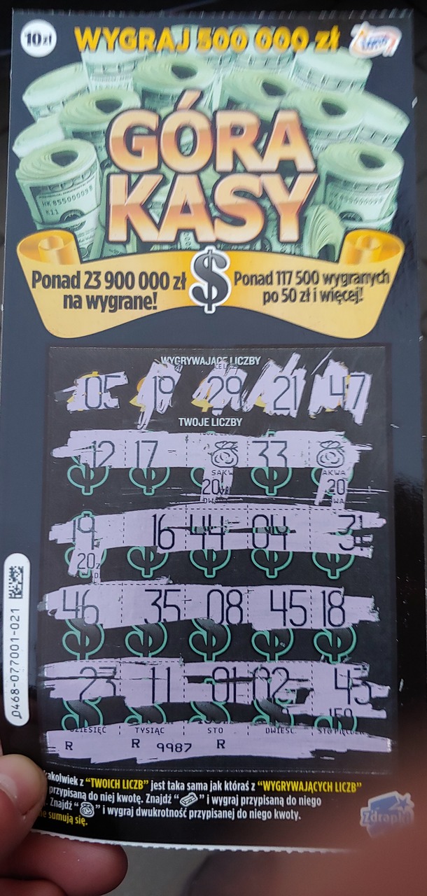 i w jednej ze zdrapek o nr wpadło 50 pln