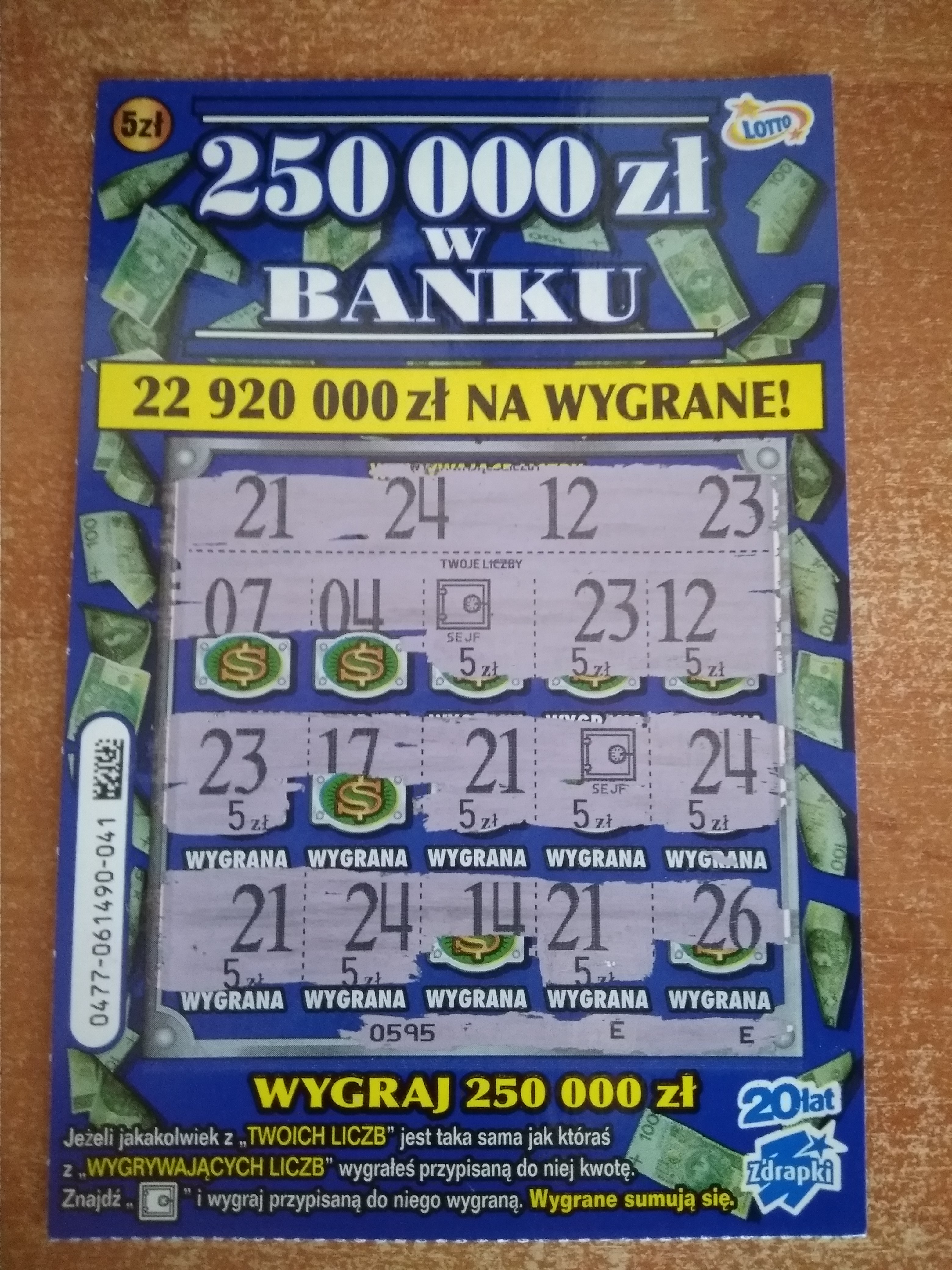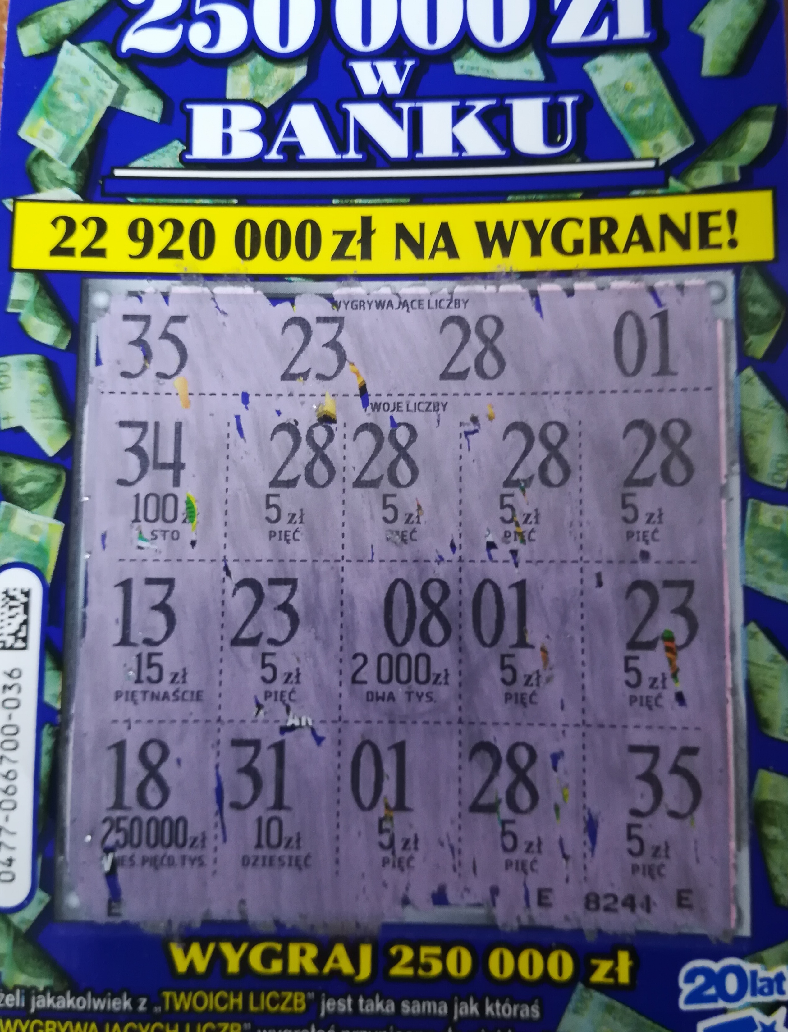 Dzięki, ktoś wie w jakim kolorze była druga główna wygrana w tej zdrapce?