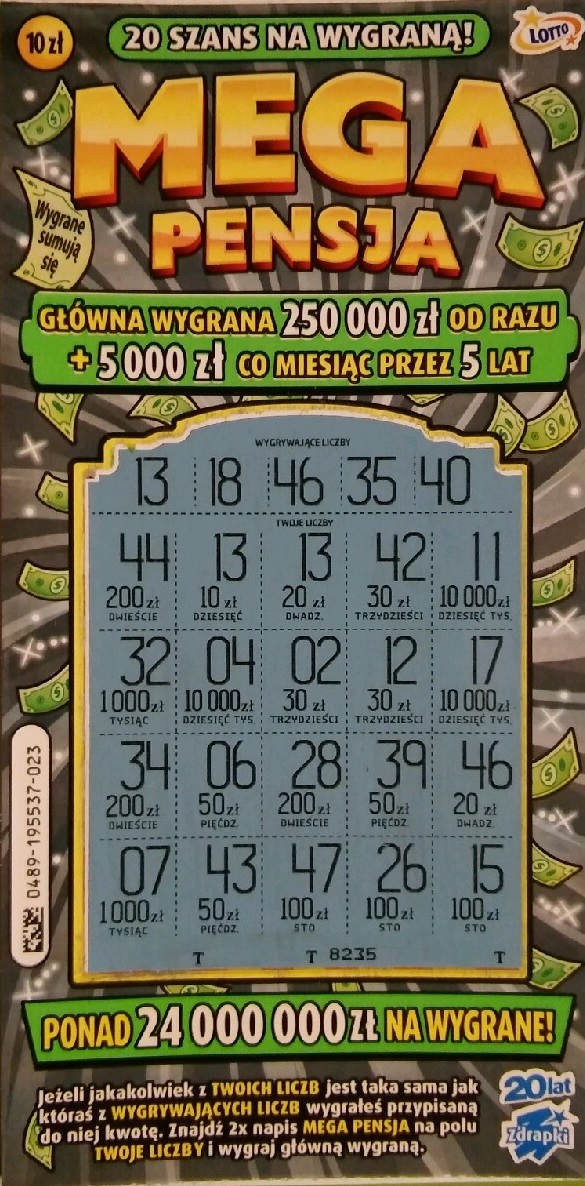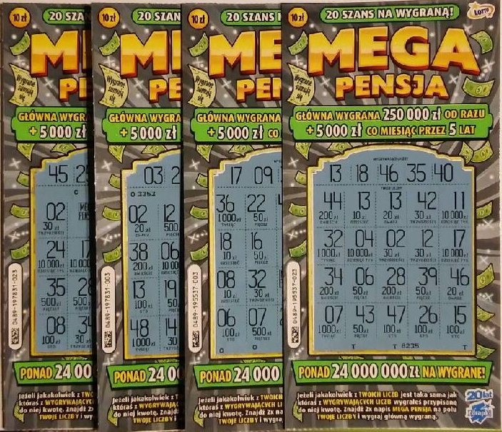 Na razie nie poszaleję, zanim w punktach gdzie kupuję zdrapki te paczki zejdą to trochę potrwa.A na chwilę obecną ze zdrapek po 10 zł mają tylko nową Krzyżówkę oraz Mega Pensję starą i nową ; nie mam co kupować![]()