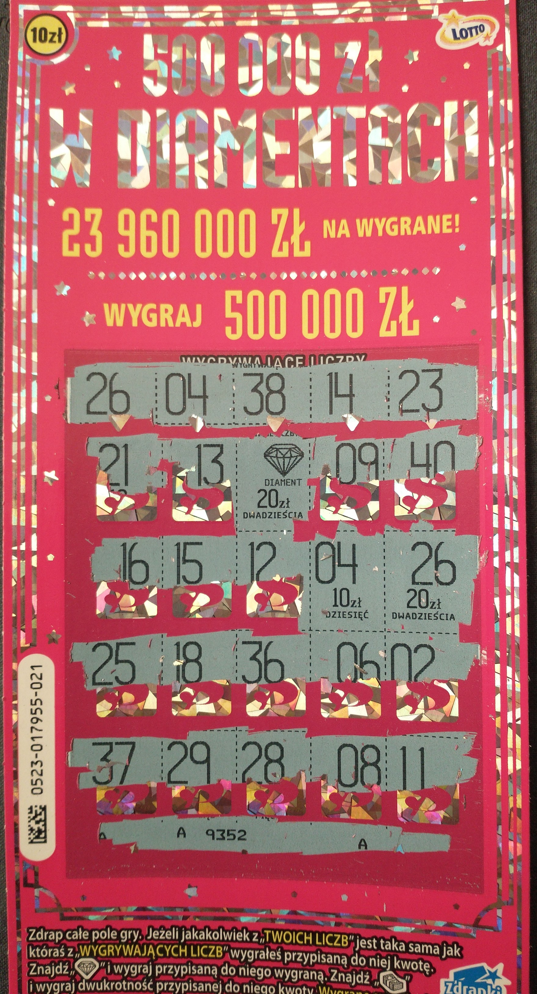 No jak skończy się ekstra pensja to diamenty staną się najbardziej atrakcyjną zdrapką. U mnie chyba nie ma już tej zdrapki a przynajmniej nie rzuciła mi sie w oczy, z resztą numery też były nieatrakcyjne z tego co pamiętam. No ale jak spotkam to rozpoznawczo wezmę jedną.