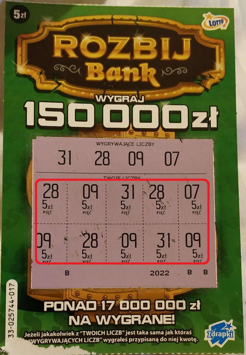 Drapię ją i drapię ,ale w 95% to pustaki , a wygrane groszowe. No ,ale tak naprawdę kupuję ją dla głównej bo sama forma jest tragiczna i wygląd jej mnie już odrzuca. Na koniec jej życia wrzucę jakieś podsumowanie tej tragedii