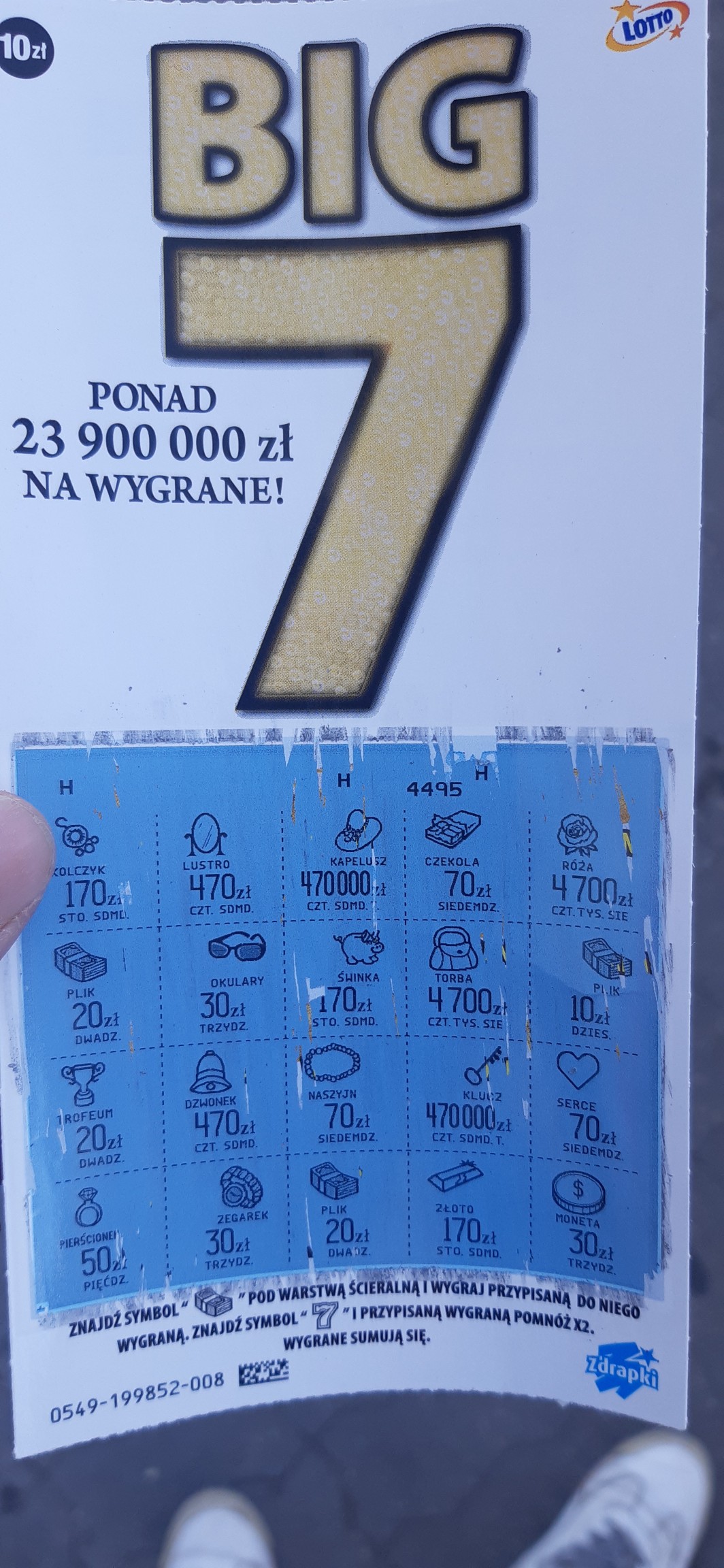 Dzisiaj zebrałem ładne żniwa , z braku laku zdecydowałem się na zakup droższych zdrapek m.in. BIG 7 w ilości sztuk 1 i wpadło 50zł. Pierwszy raz zobaczyłem te mnożące siodemki