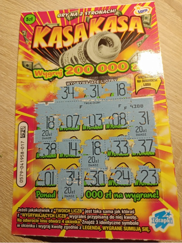 Gratuluję ma Pan dziś dobry dzień:)michal1080 pisze: ↑27 sty 2022, 17:49W ramach spaceru po Kołobrzegu odwiedziłem z jakieś 20 kolektur, z czego w siedmiu mieli jeszcze tę zdrapkę. Na 7 sztuk trafiło się 1x5zł i taka perełka: