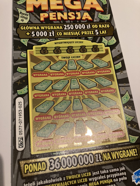 Jak sięgam pamięcią to prawie zawsze świąteczne mixy kończyły się u mnie katastrofą. W tym roku po raz pierwszy zdrapki sypnęły Nam wygranymi, a drapałem tradycyjnie z rodzinką. Praktycznie każdemu z nas udało się coś tam wydrapać, po ok. 20-30zł i zwrot kosztów jego puli losów, ale całą sprawę zaorał mój tata. Trafił w Mega Pensji coś, czego mnie się jeszcze nie udało ani razu. I żeby było ciekawiej taką zdrapkę jak MP miał w rękach pierwszy raz i na dzień dobry weszło mu 100zł :)
