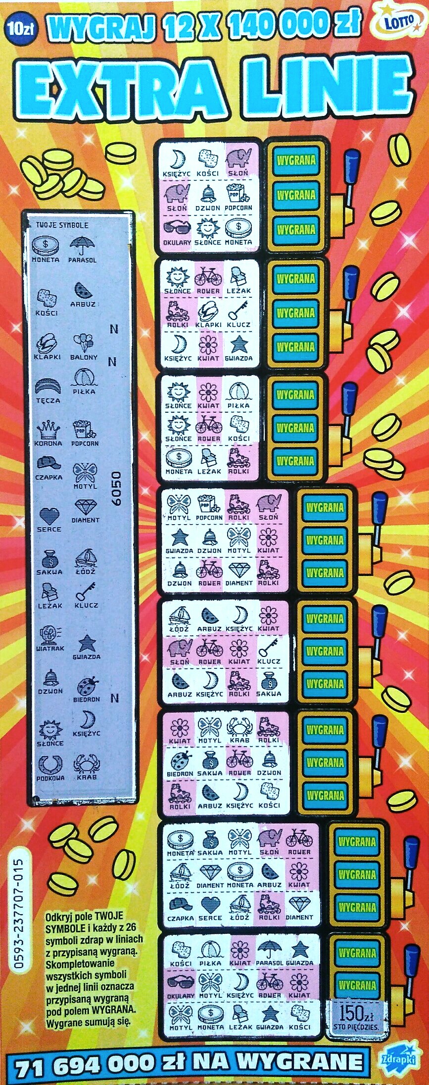 No ja powtarzam że extra linie to jedna z najsłabszych zdeapek za 10 a tyle kupujecie tego losa jakbyście nie wiadomo co w niej wygrywali. Szansa na "stefana" to 1: 250 czyli bardzo mała. W innych jest to raz na 125, 133 lub 166 losów.
