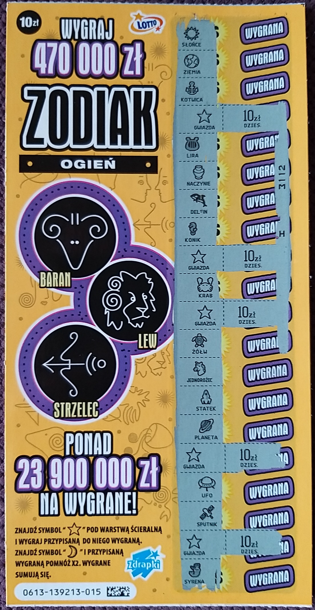 I znowu kupiony Bonus z Zodiakiem, ostatnie 5 od 021 do 025 i 90 ziko