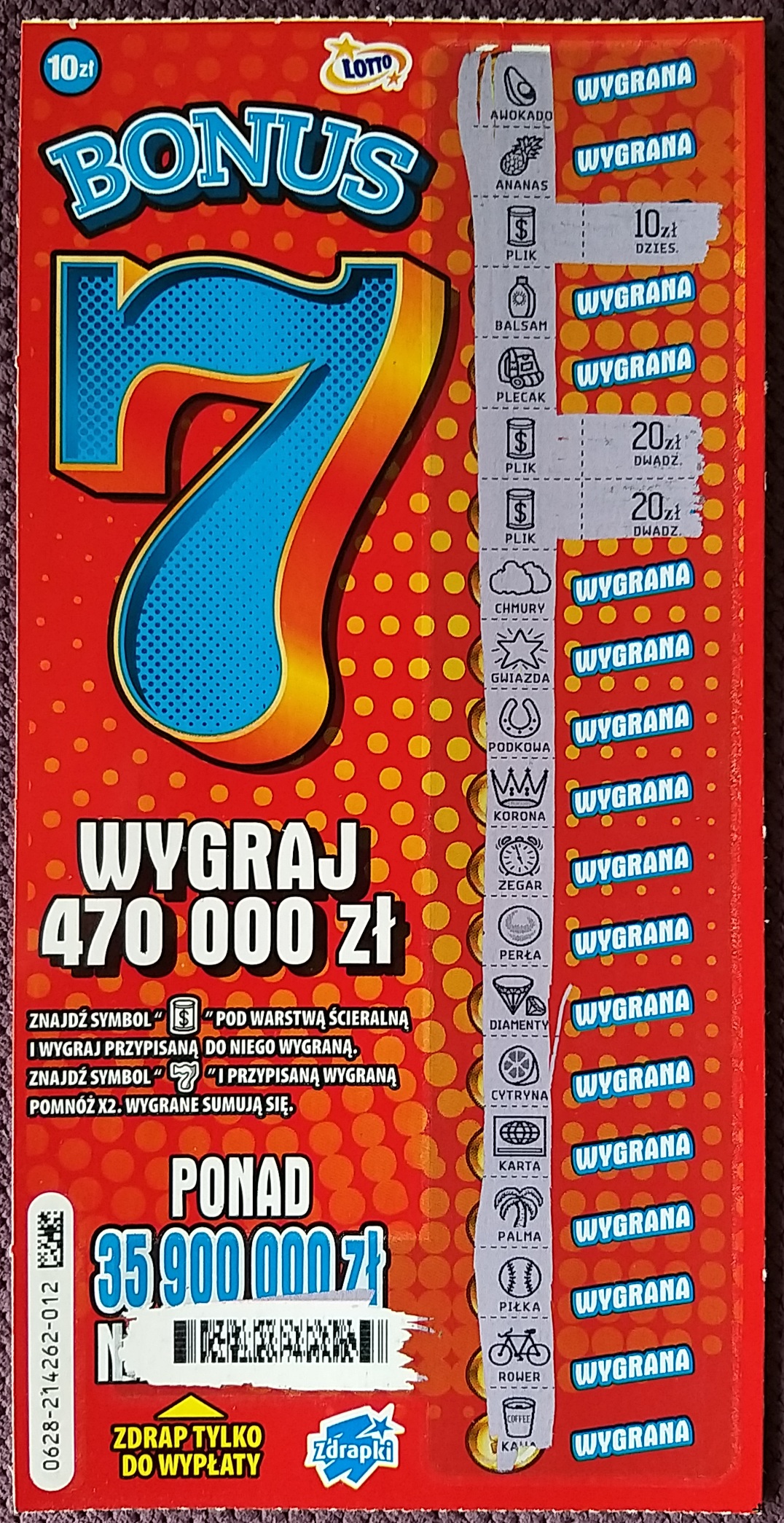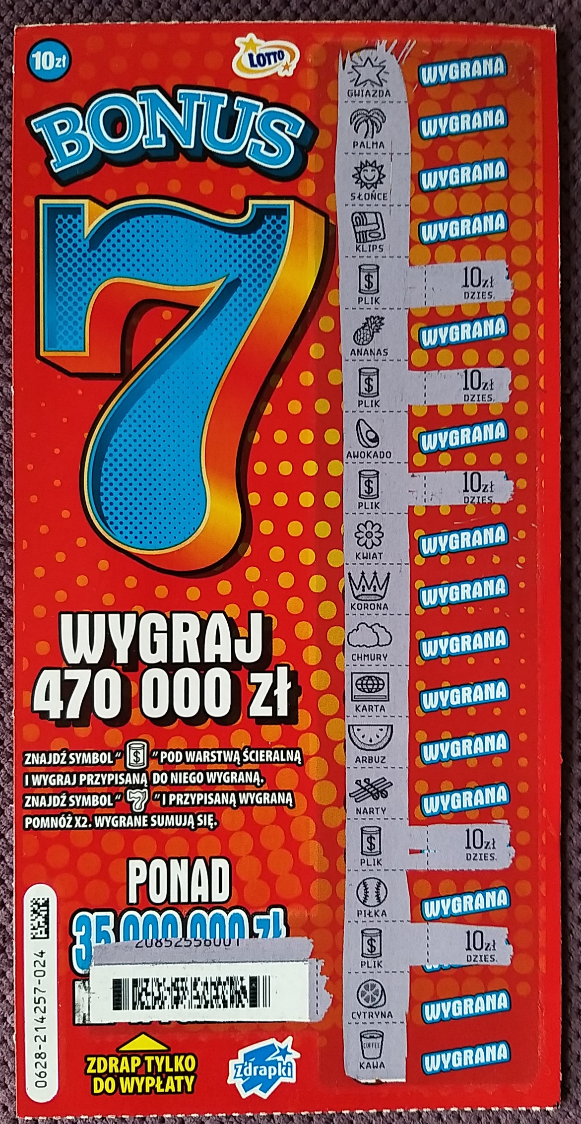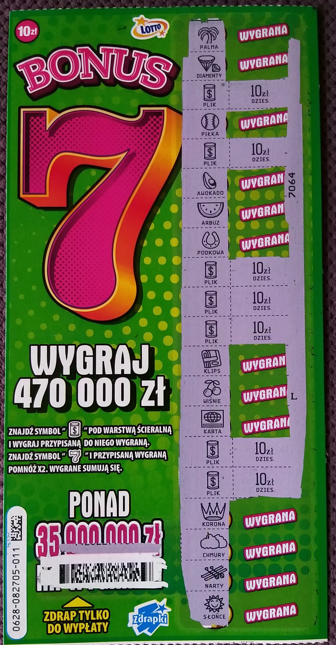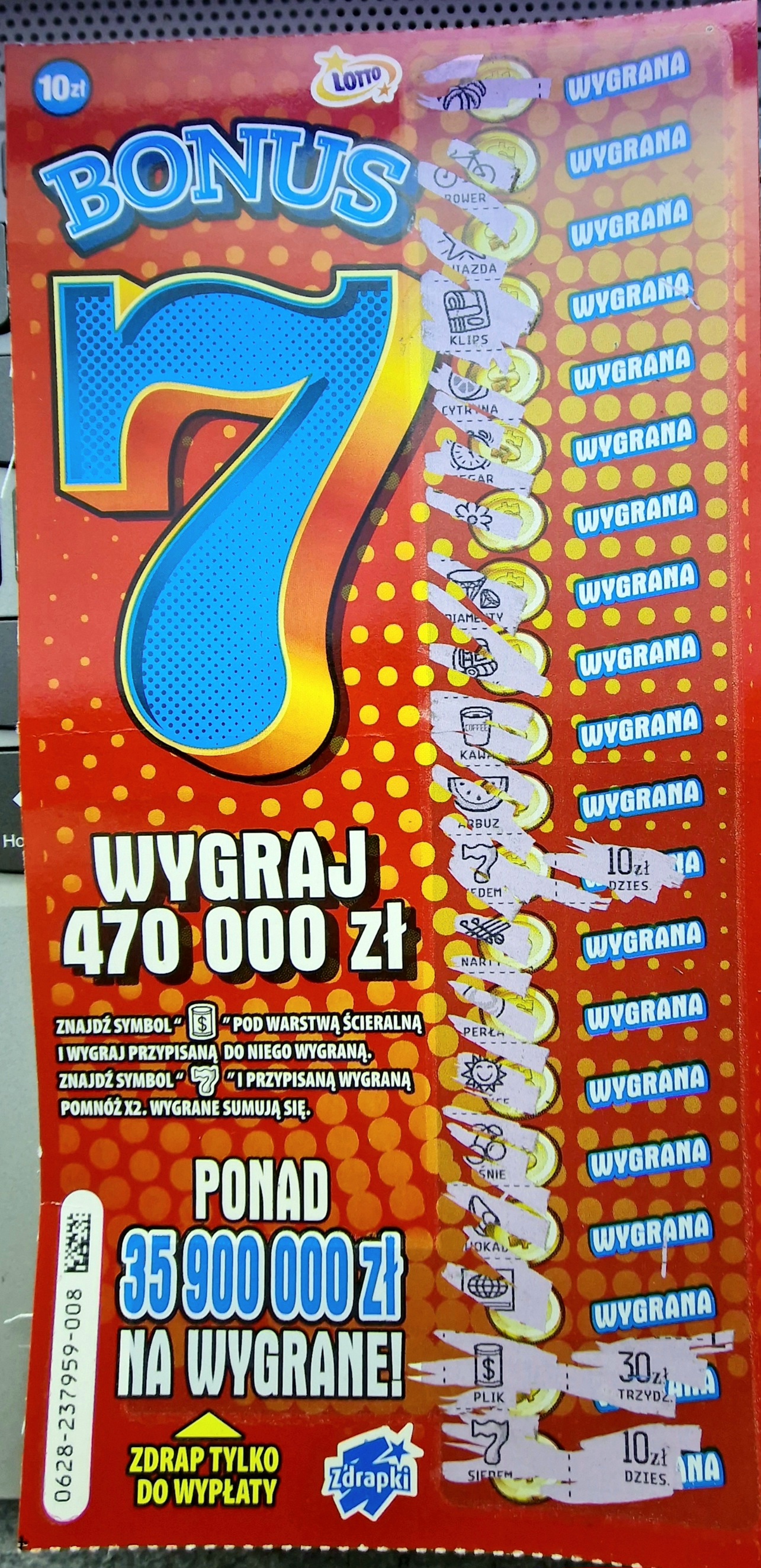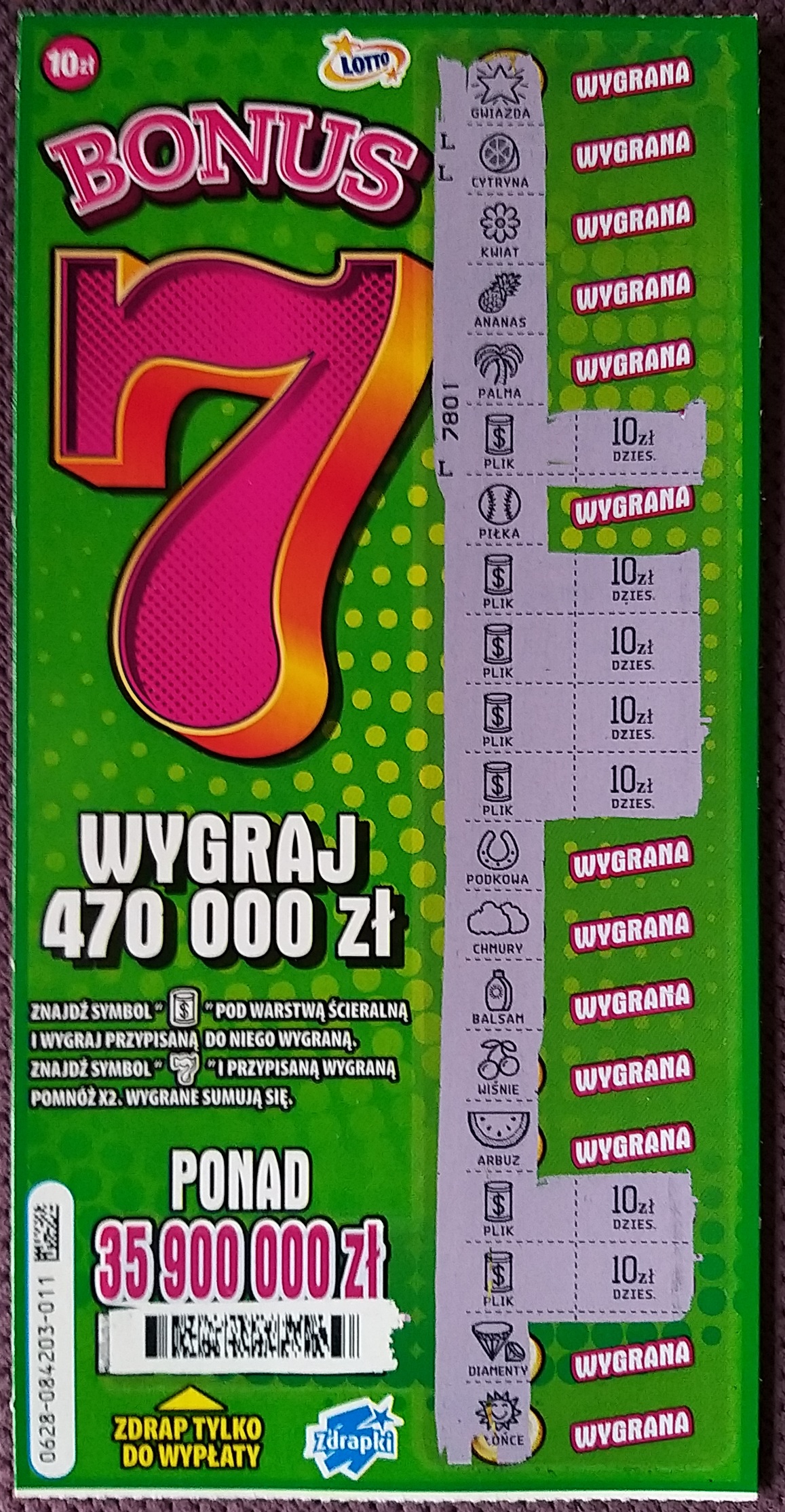 Chyba lubię się z tą zdrapą, wzięte ostatnie 2 sztuki i bumm 010-10, 011-70