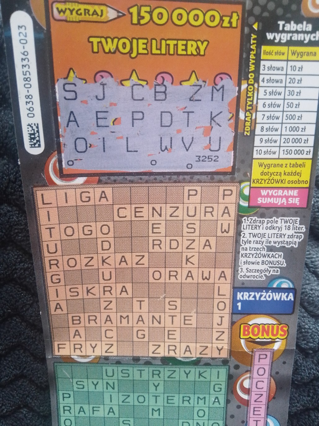 sprawia mi dużo frajdy Ale nie odkrywanie kontrolnych tylko drapanie odkrywanie kolejno cyfr życzę powodzenia oby coś ciekawego wpadłoSorki, BULWARMobilisA075 pisze: ↑20 sie 2022, 6:50Coś nie jest tu kręcone? Nie można mieć bonusu browar, bo nie ma egzemplarzy z dwiema identycznymi literkami w bonusie tak jak w tym przypadku R.