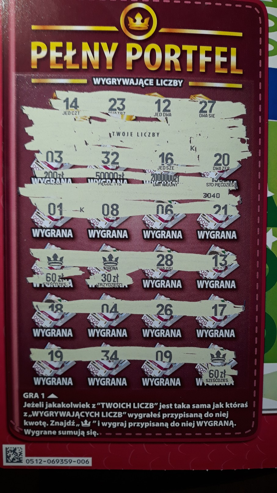 Proszę państwa wziąłem przykładowe 3 zdrapki.