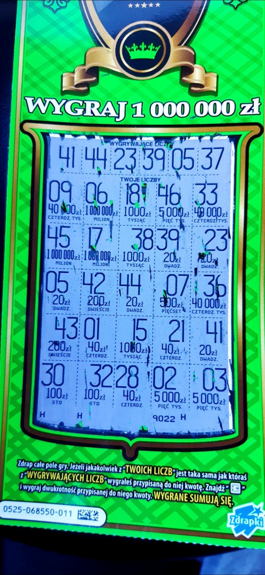 Wymieniłam dziś rano 40 zł z wczorajszej Mega Wielkiej Pensji na dwa Kluby. Zdrapka nr 009 była pusta, natomiast w 015 trafiłam 100 zł