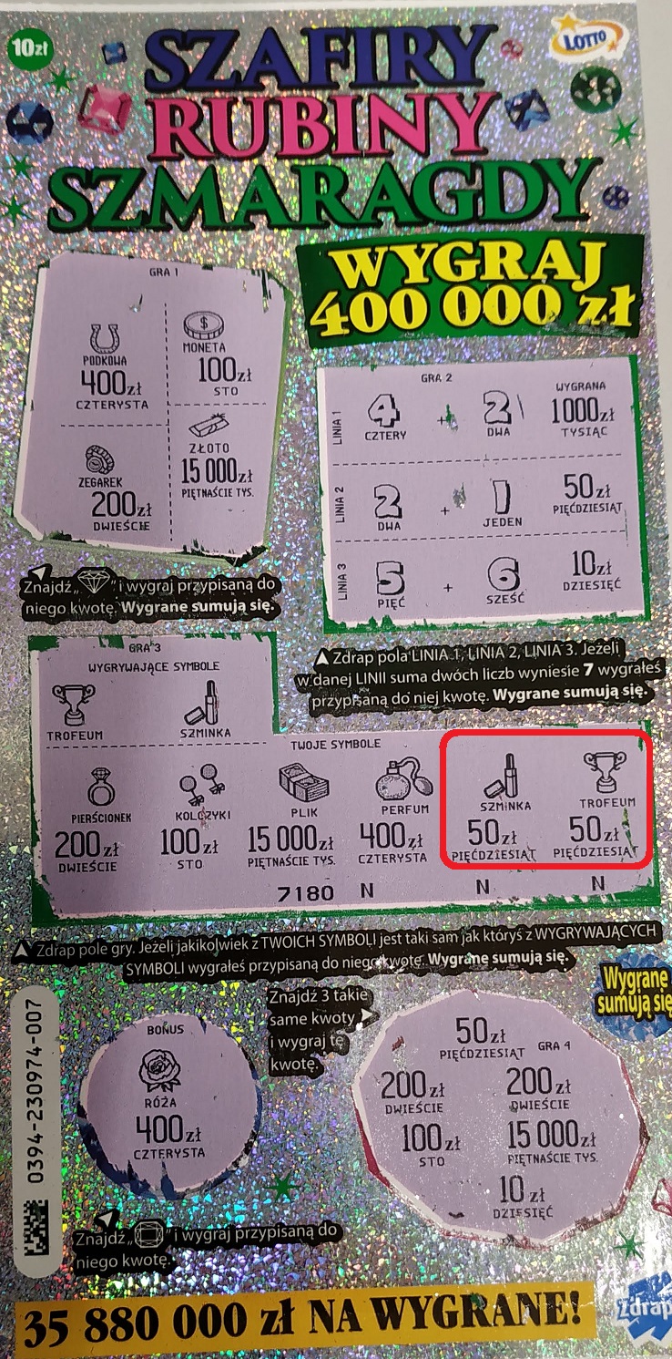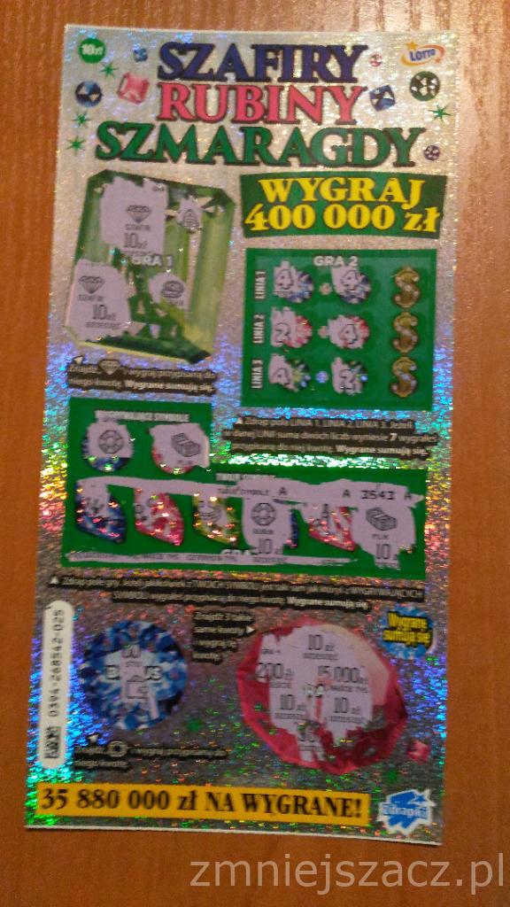 Ja z kolei dziś utopiłem 90 zł, między innymi również w szmaragdy, niestety, nie wydrapałem nic.