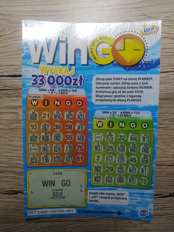 Znowu Win Go pojawiło się na mieście. Wczoraj po sztuce z dwóch różnych kolektur, obie puste. Dziś wracając z pracy wziąłem sobie w mojej kolekturze 3 sztuki: dwie puste, a w trzeciej 60 zł w bonusie.